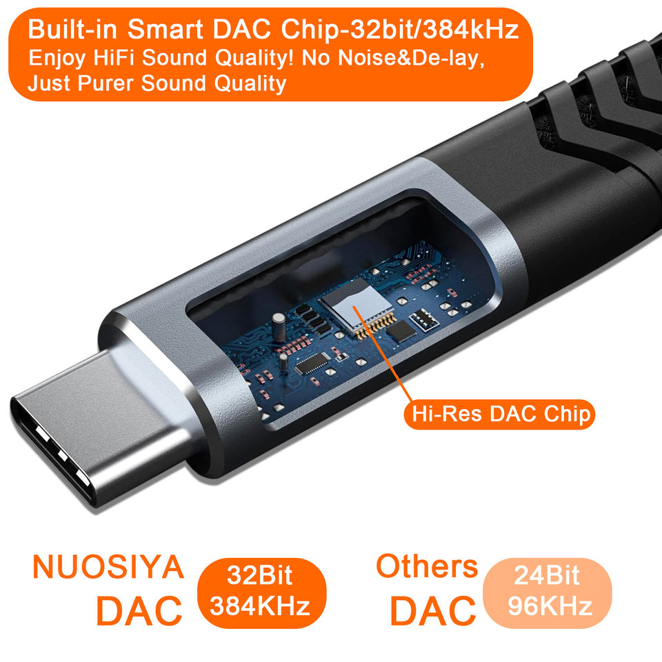 สายเคเบิลแยกเสียงแบบ Y ไนลอน 2 in 1 รุ่นใหม่ปี 2024 สำหรับเชื่อมต่อ USB-C เป็นช่องเสียงเดี่ยวขนาด 6.35 มม. (1/4 นิ้ว) แบบ OTG
