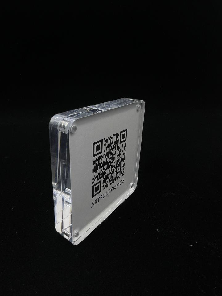 ป้ายอะคริลิค QR Code สำหรับธุรกิจ ปี 2024 ราคาโรงงาน ดีไซน์หรูหรา ฐานไม้ ขนาด 100x100 มม. วางบนเคาน์เตอร์ บริการ ODM