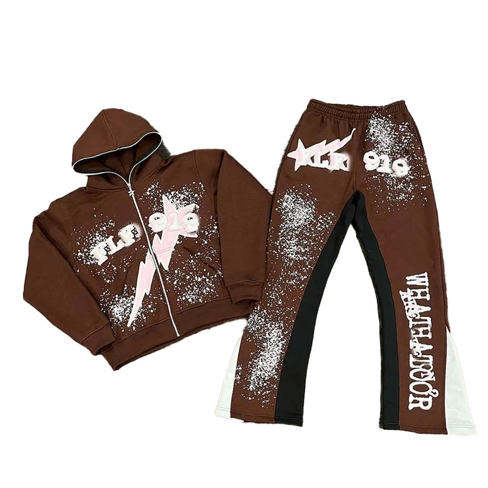 ชุดวอร์มสองชิ้นสำหรับผู้ชายเสื้อฮู้ดและกางเกงวอร์มวินเทจแบบมีซิปออกแบบได้ตามต้องการ