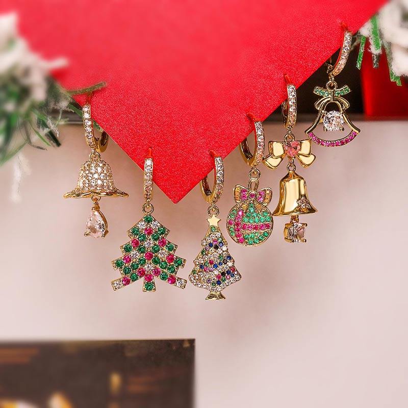 แฟชั่น2024ลดกระหน่ำเครื่องประดับทอง18K สำหรับสตรีเครื่องประดับต้นคริสต์มาสทำจากทองเหลืองต่างหูเพทายสำหรับเป็นของขวัญ