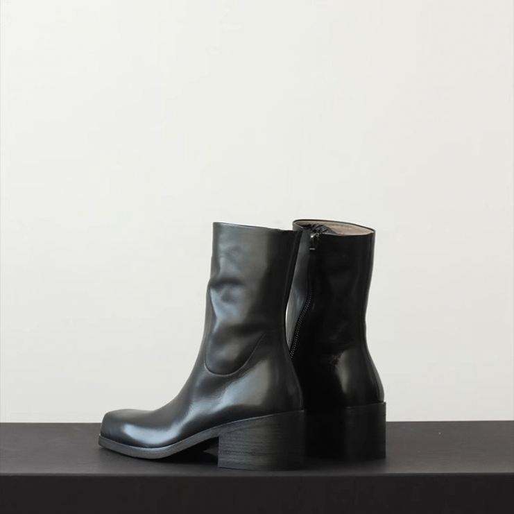 2024แฟชั่นใหม่ล่าสุดบูทหุ้มข้อหัวสี่เหลี่ยมบูทหนังแท้แบบย้อนยุคมีซิปด้านข้าง