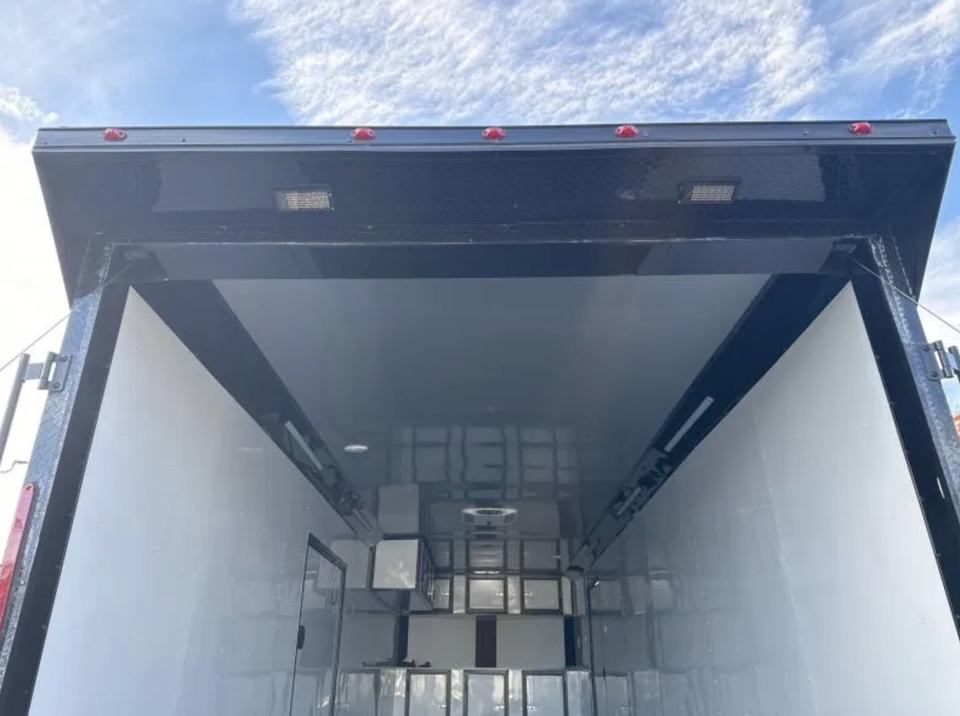 รถพ่วงบรรทุกอาหารแบบปิดสีเทาถ่านพร้อมโครงสแตนเลส ปี 2024 สำหรับขนส่งอาหารเร็วและอาหารฟาสต์ฟู้ด พร้อมระบบไฟฟ้าในตัว รับประกัน 2 ปี