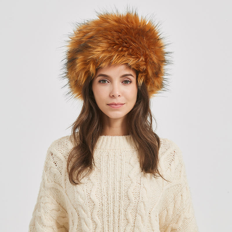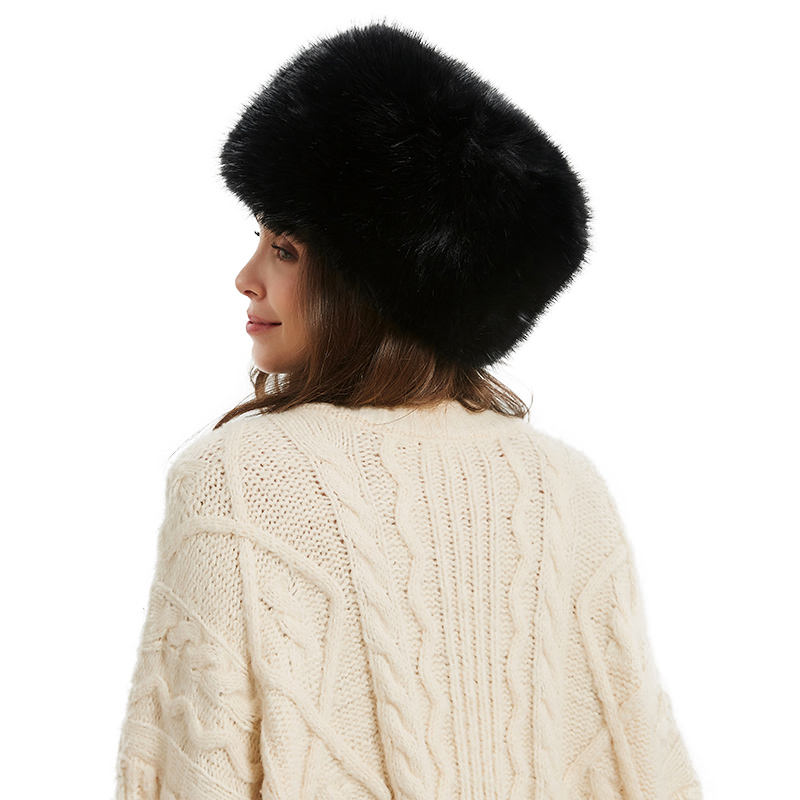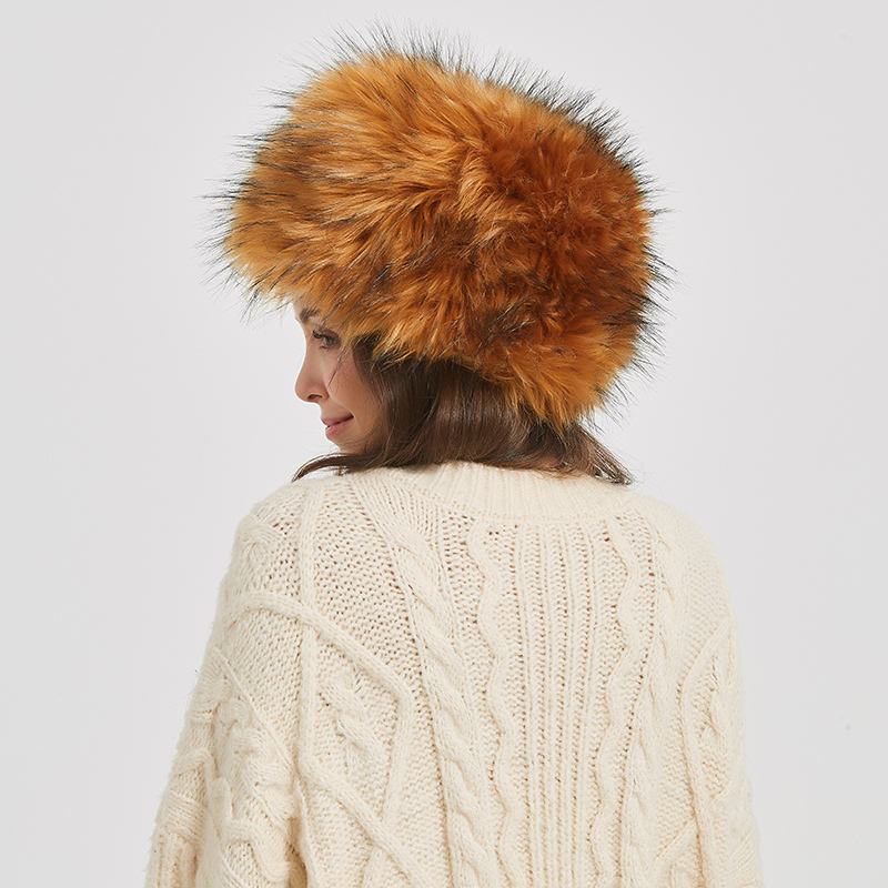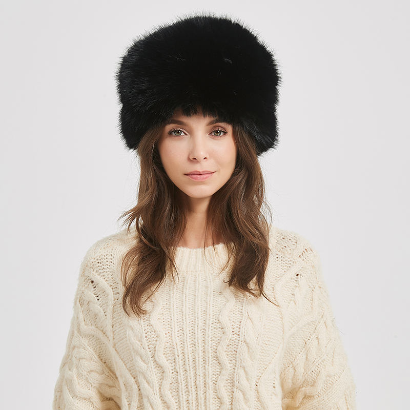 หมวกทรงถังขนสุนัขจิ้งจอกเทียม2024สำหรับผู้หญิงกันลมให้ความอบอุ่นในฤดูหนาวสำหรับขี่จักรยานกลางแจ้ง100% ผ้าโพลีเอสเตอร์