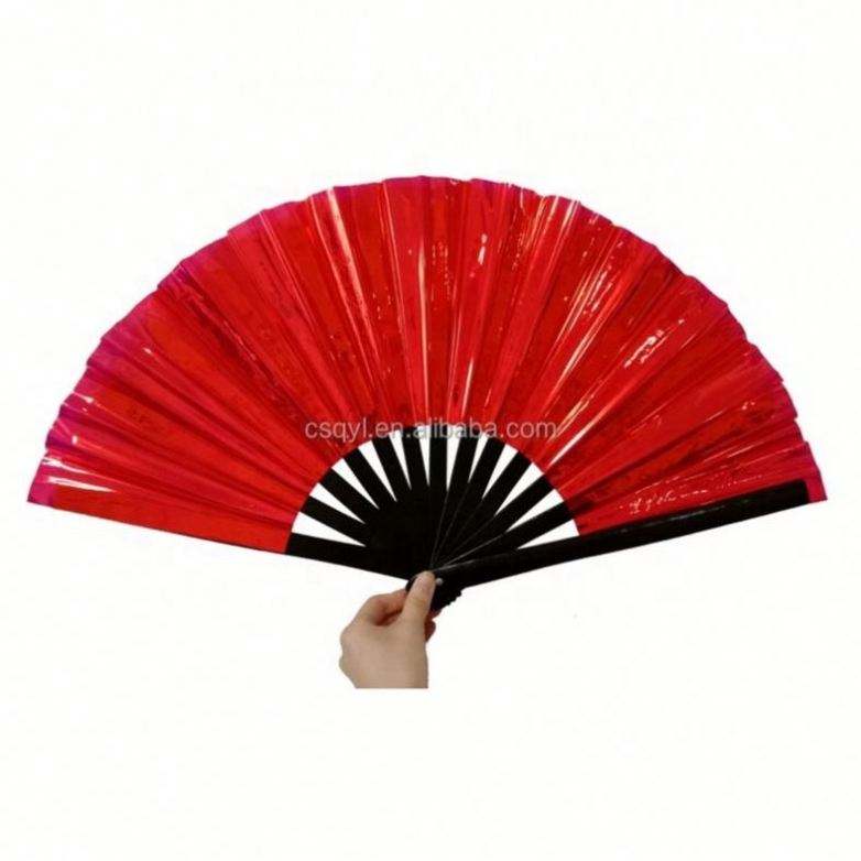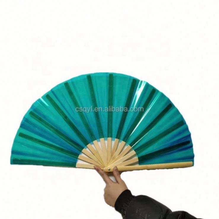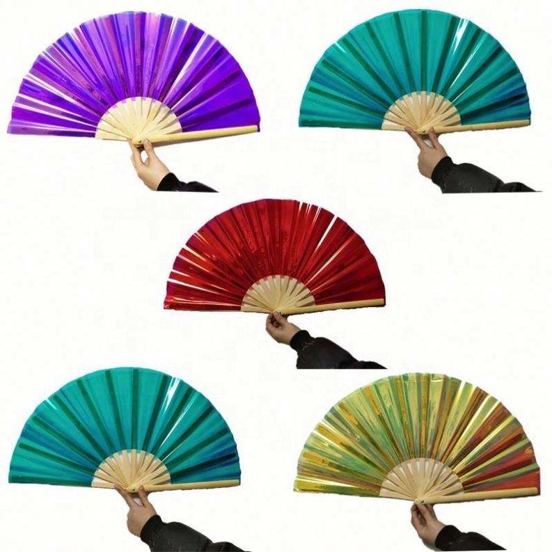 พัดพับพีวีซีโฮโลแกรมสีรุ้งขนาดใหญ่ ของขวัญโปรโมชั่นสต็อกเต็มปี 2024 พัดไม้ไผ่เพ้นท์ลายสำหรับงานเต้นรำและตกแต่งปาร์ตี้