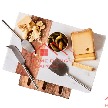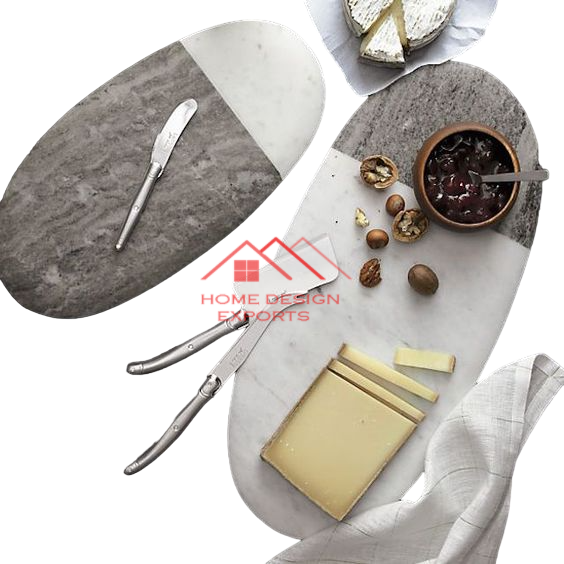 หินอ่อนบอร์ดชีสแบบมีที่จับจานหินอ่อนธรรมชาติและถาดสำหรับตัดขนมอบจานตกแต่งดีไซน์