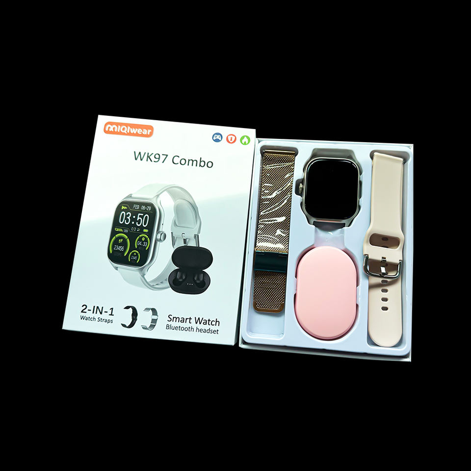 สมาร์ทวอทช์ Wk97 คุณภาพสูง ราคาประหยัด ปี 2024 สายคู่ พร้อมหูฟังและเคสป้องกัน สำหรับผู้ชายและผู้หญิง ใช้งานกลางแจ้ง