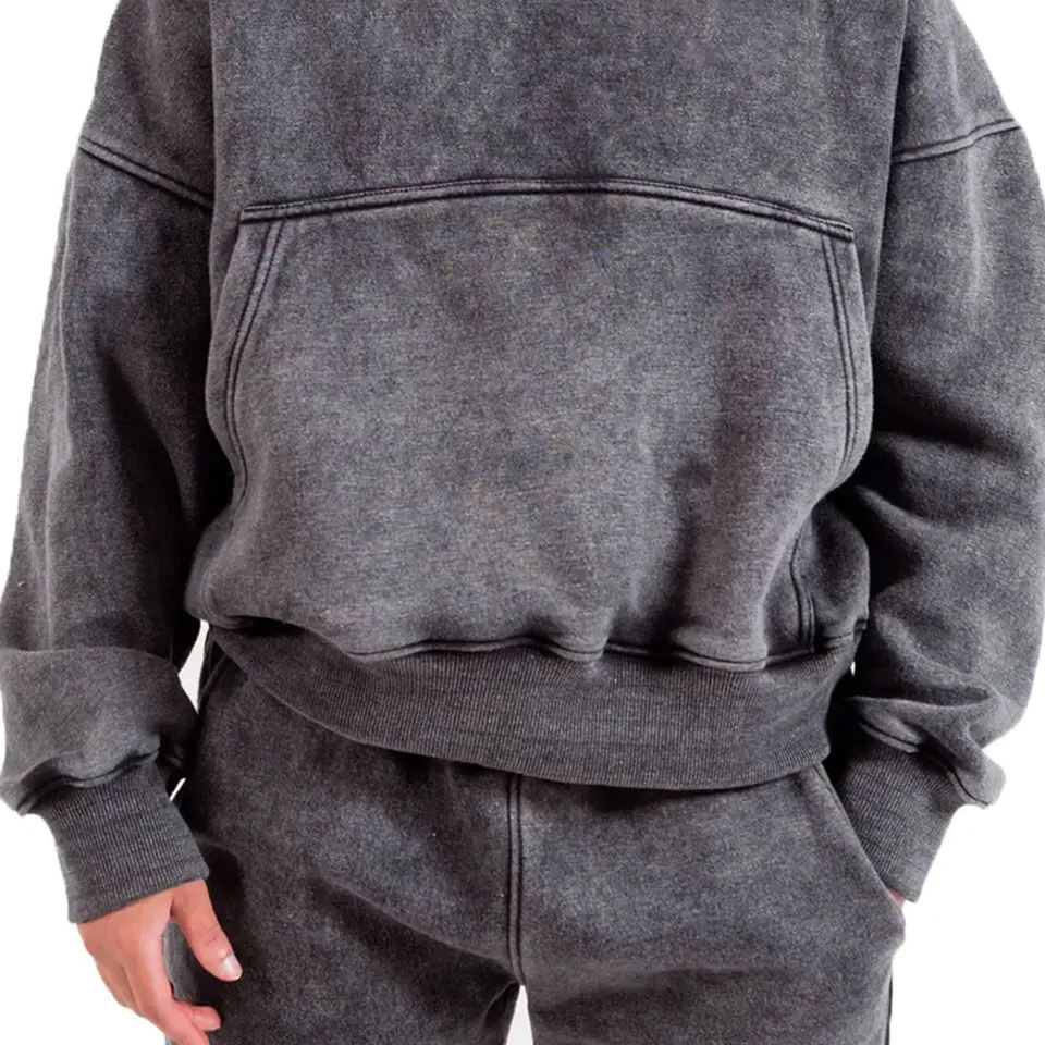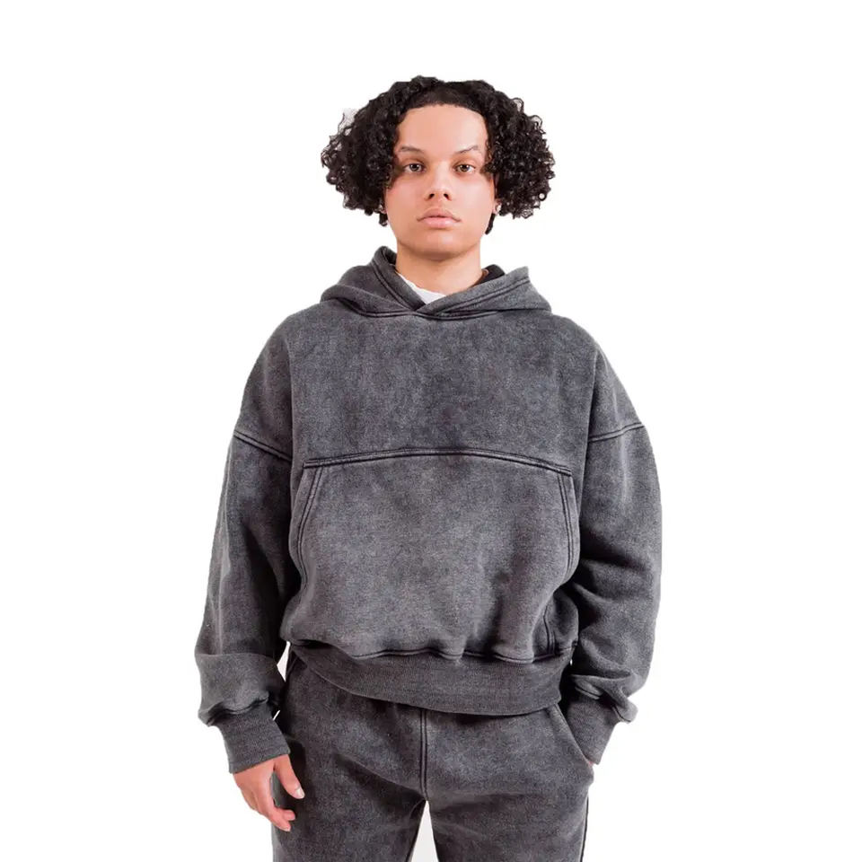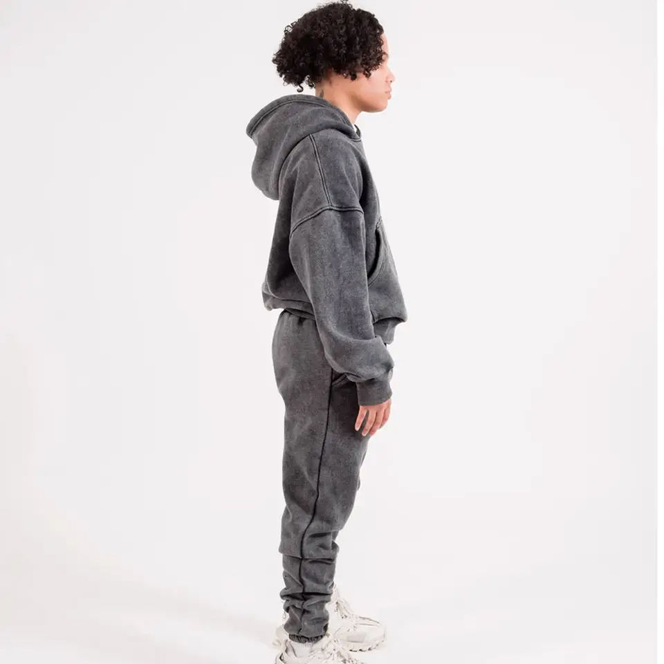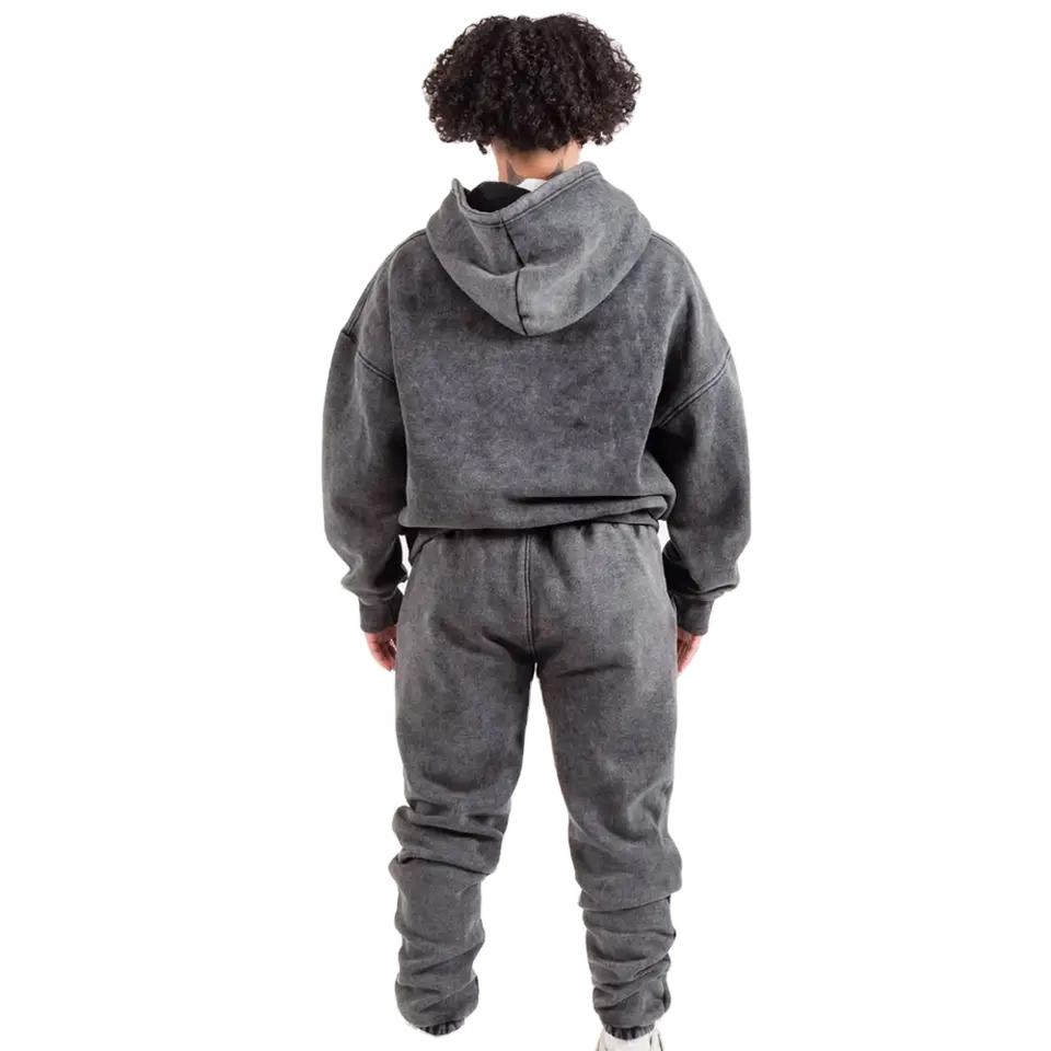 2024 คุณภาพสูงเฮฟวี่เวทกรดล้างHoodieและกางเกงขายาวชุดผู้ชายที่กําหนดเองฝรั่งเศสTerryผ้าฝ้ายStreetwear