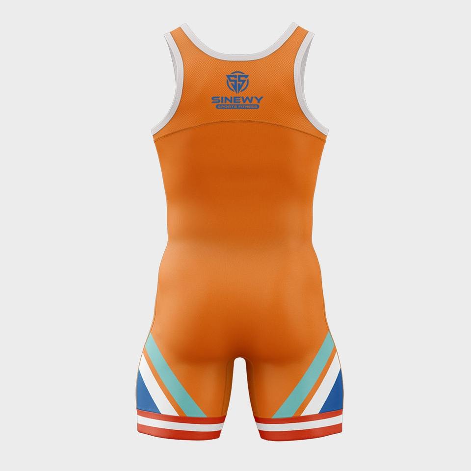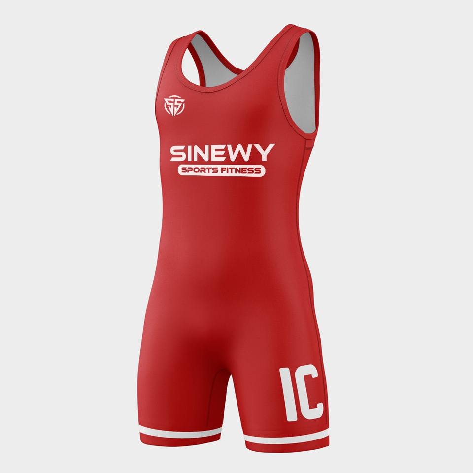 ชุดมวยปล้ำแบบชิ้นเดียวสำหรับผู้ชาย สไตล์ทีมชาติ พร้อมโลโก้ด้านหน้า ผ้าสแปนเด็กซ์/โพลีเอสเตอร์ ยืดหยุ่น แห้งเร็ว ระบายอากาศได้ดี