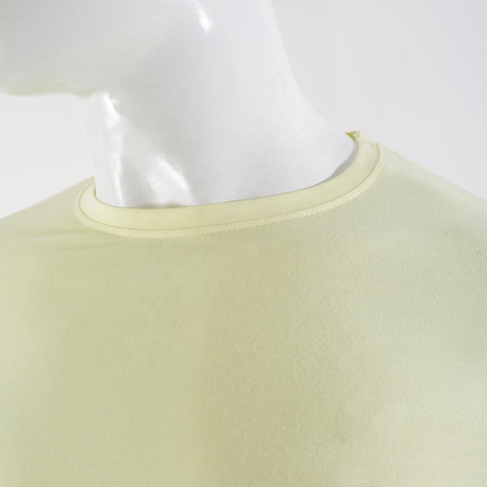 เสื้อยืดผ้าฝ้าย100% สำหรับผู้ชายเสื้อครอปไหล่ตกสีเรียบออกแบบได้ตามต้องการมีเอกลักษณ์ผ้าถักแบบหนา