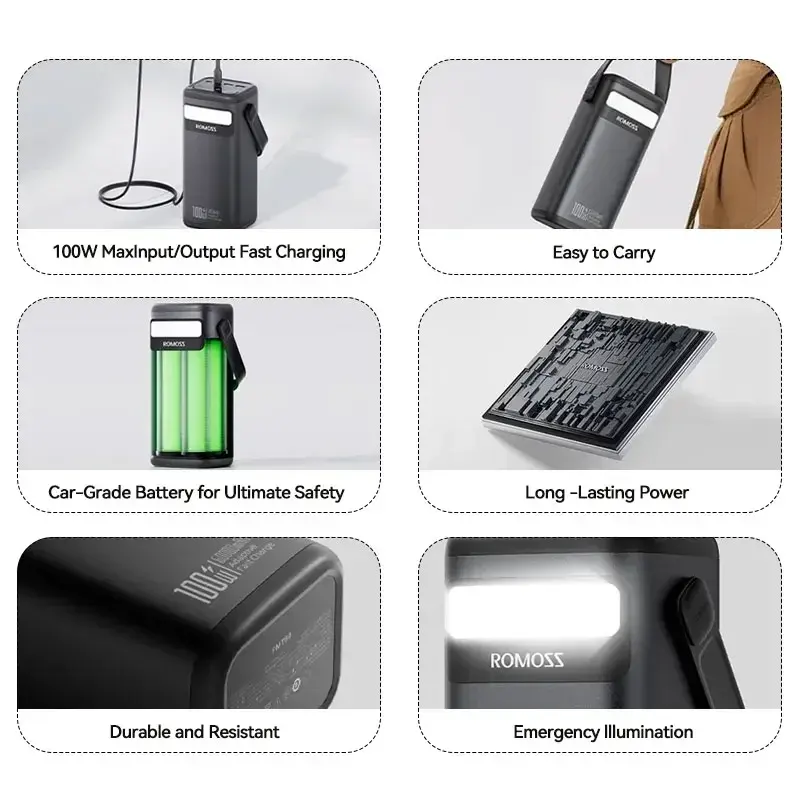 60000 mAh 100W Type C ชาร์จเร็วได้พลังงานสำรอง PMT60 ROMOSS
