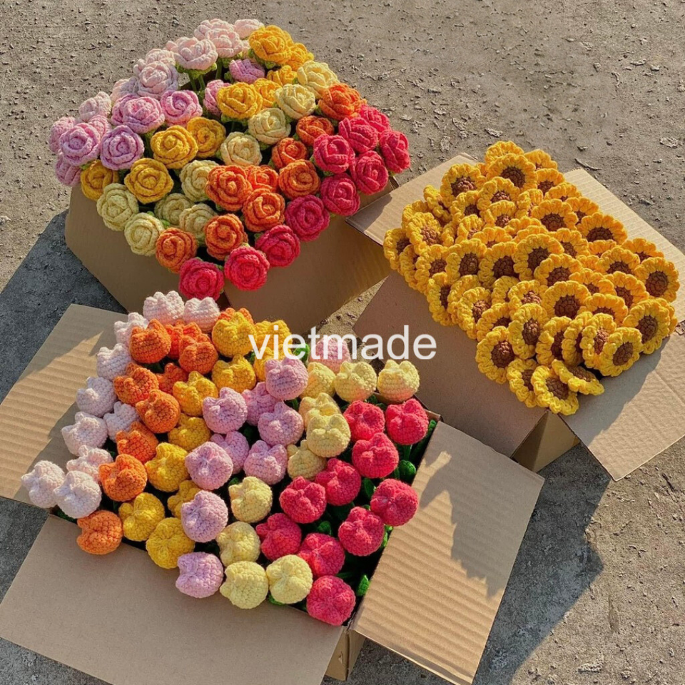 ช่อดอกไม้ถักไหมพรมงานแฮนด์เมดสำหรับตกแต่งบ้านของขวัญเทศกาล2024ช่อดอกไม้ถักด้วยมือ