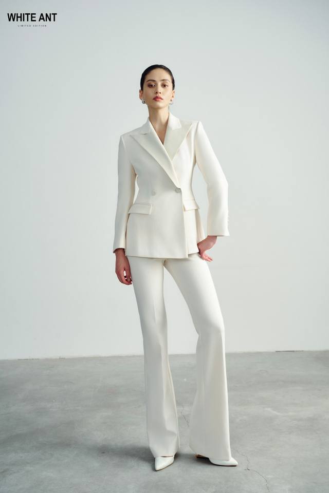 เบลเซอร์แขนยาวสำหรับผู้หญิง, เบลเซอร์รอยบากสไตล์2024เป็นมิตรกับสิ่งแวดล้อมผ้าออดรีย์สีขาวแบรนด์ท้องถิ่นของเวียดนาม