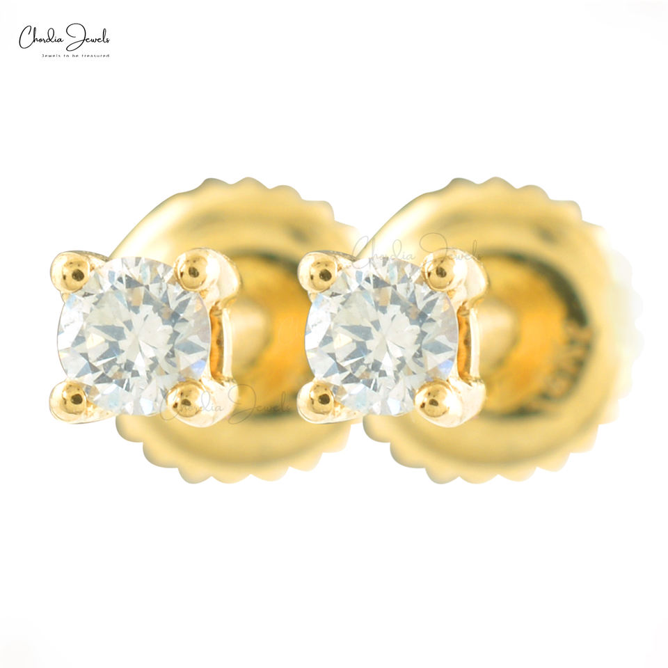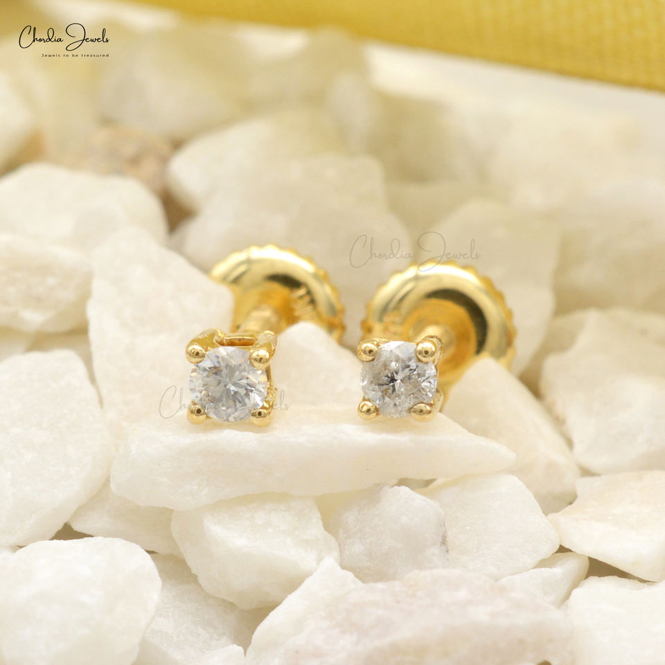 สินค้าขายดี2024ต่างหูเม็ดเดี่ยวทองคำขาวแท้14K สำหรับสาวๆเครื่องประดับเพชรเม็ดเล็กสำหรับผู้หญิง