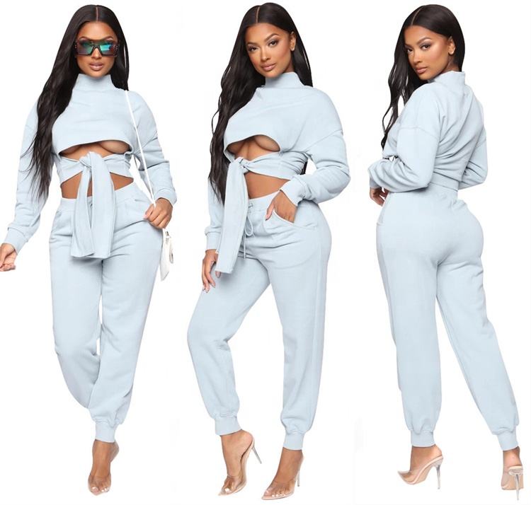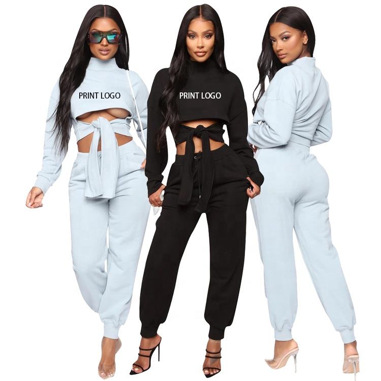 2024 การออกแบบเสื้อสเวตเตอร์ขายร้อนการออกแบบที่กําหนดเองโลโก้วอร์ม Joggers และเสื้อครอปสําหรับผู้หญิง Sweatsuit