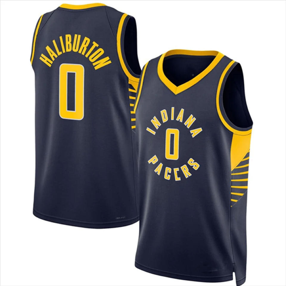 เสื้อเจอร์ซีย์บาสเก็ตบอล2024อินเดียนาเสื้อกีฬาปักลาย2023/24สีดำฮาลิเบอร์ตันเสื้อเชิ๊ตผู้ชายบาสเก็ตบอล0 tyrese haliburton 43 Pascal siakam