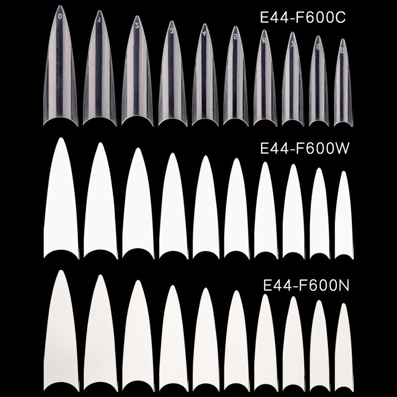 2024 อินเทอร์เน็ตใหม่ขายส่งเล็บปลอมสีขาวหัวผีเล็บฝรั่งเศสชิ้นขนาดเดียวบางเฉียบโปร่งใส Stiletto เคล็ดลับเล็บ