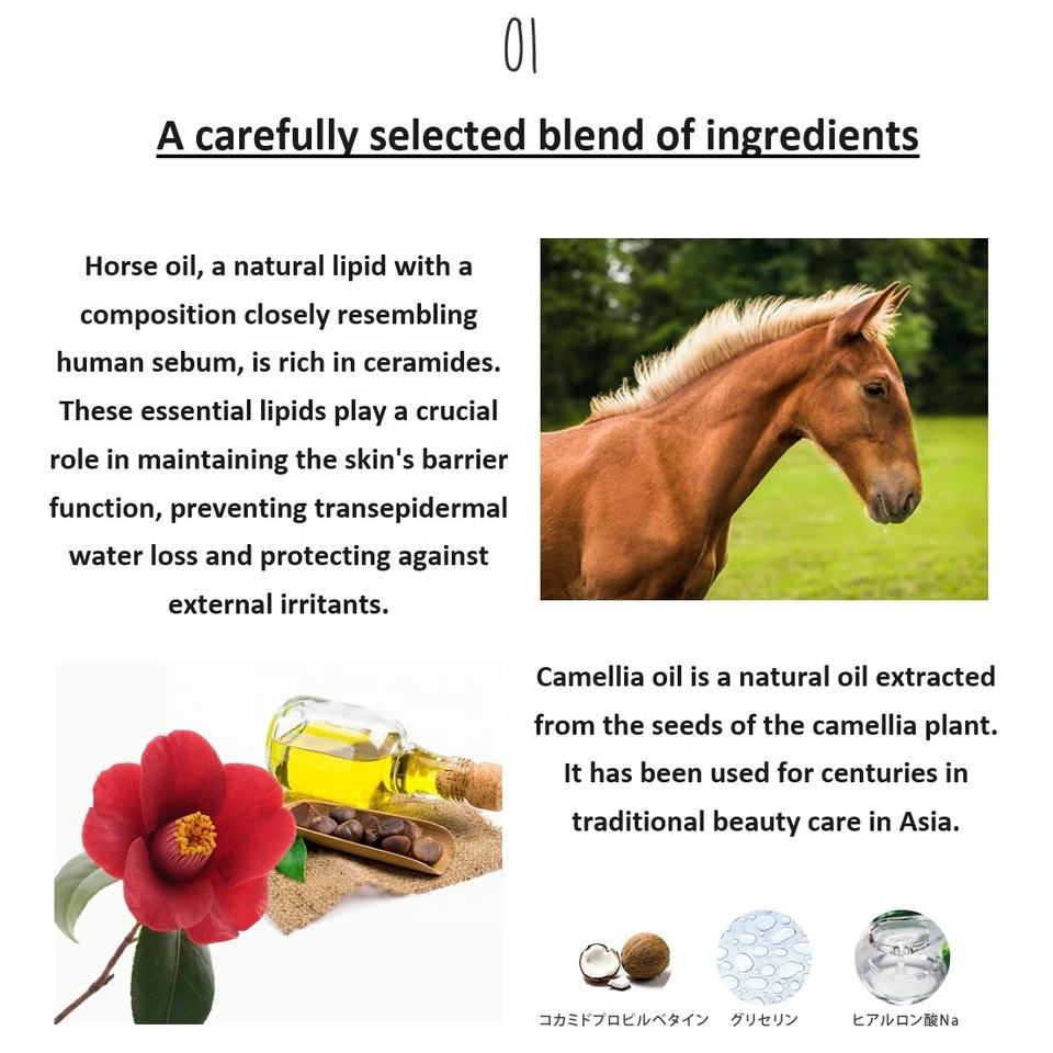 ส่วนผสมหลัก:น้ำมันม้าน้ำมันคาเมลเลียและสารสกัดจากธรรมชาติอื่นๆ