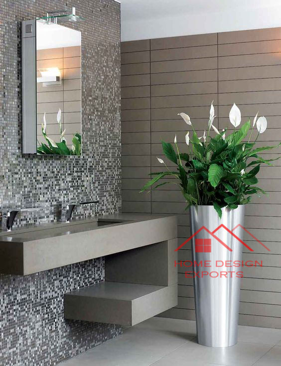 แจกันทรงสูงปลูกต้นไม้ทำจากโลหะสีเงินสำหรับตกแต่งโรงแรมในบ้าน