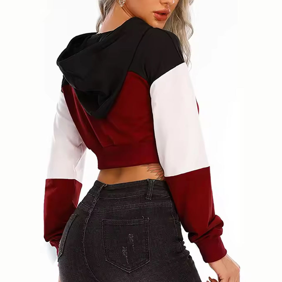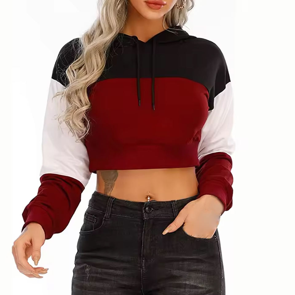 เสื้อครอปมีฮู้ดสำหรับผู้หญิงผ้าคอตตอน/โพลีเอสเตอร์เสื้อครอปไซส์ XL ดีไซน์ใหม่ล่าสุด2024