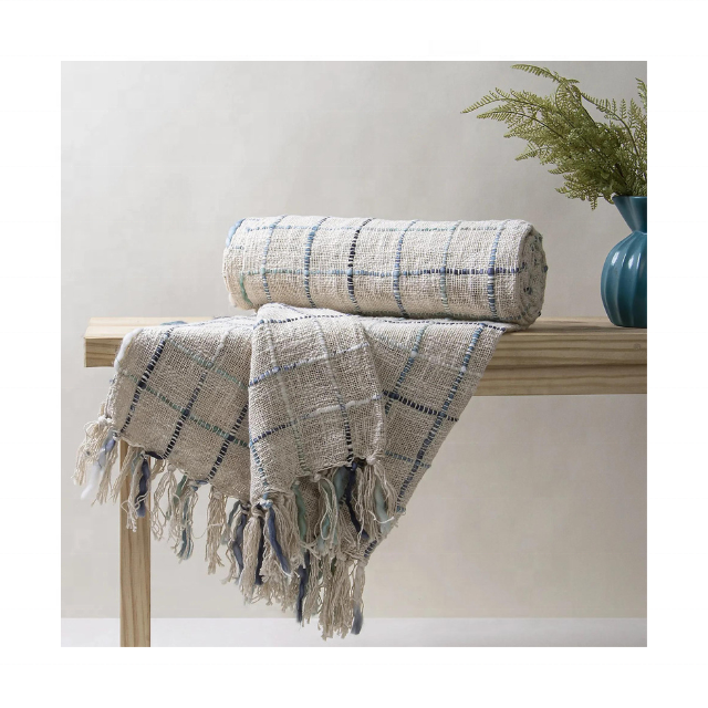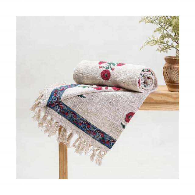 ผ้าห่มผ้าฝ้ายและผ้าขนสัตว์ระบายอากาศลายดอกไม้ล่าสุด2024ได้รับการรับรองว่ามีน้ำหนักเบาเหมาะสำหรับโซฟาและโซฟายามเย็นในฤดูร้อน