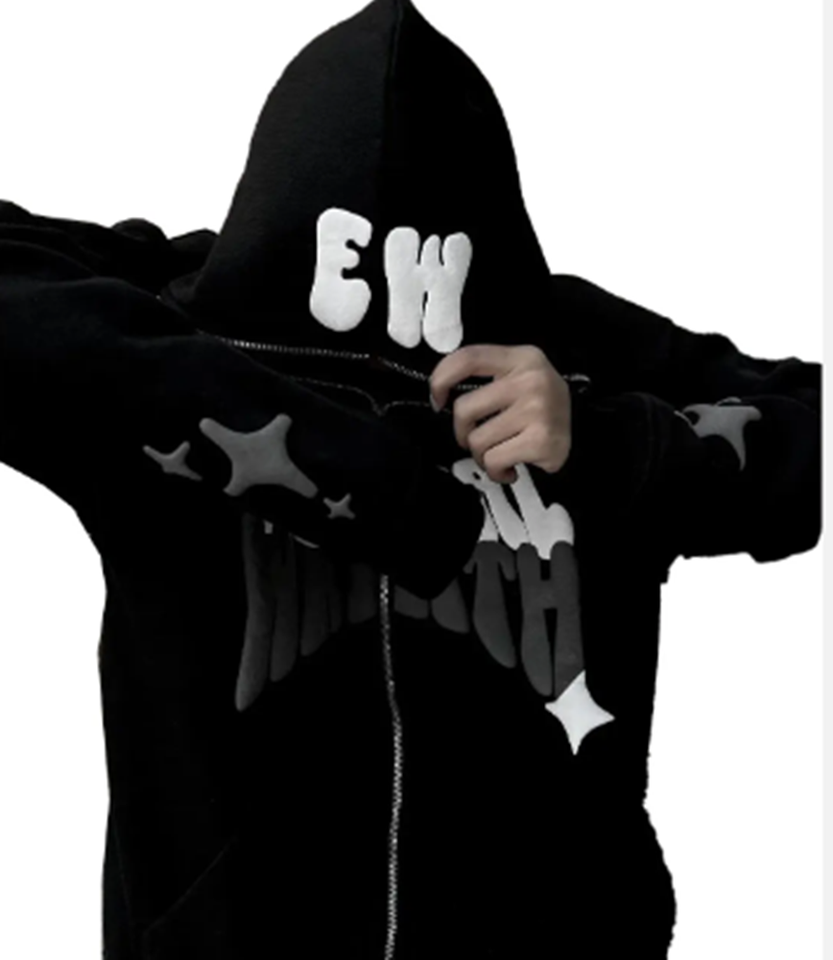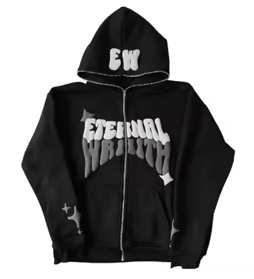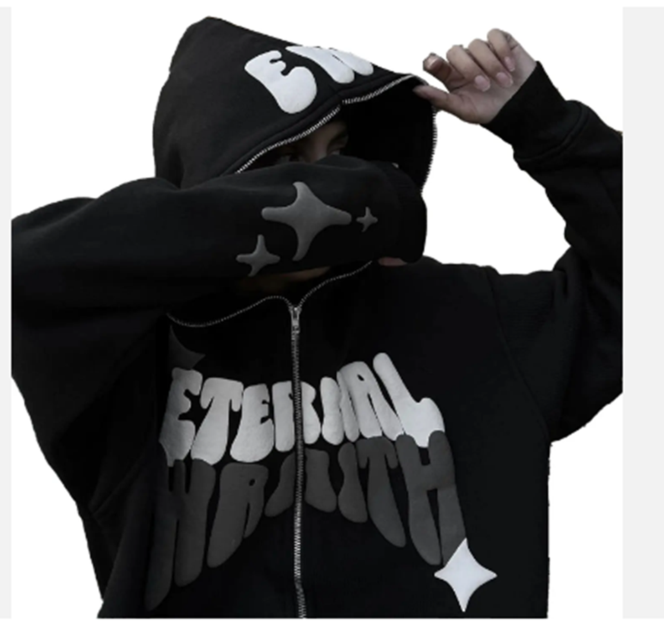 2024มีฮู้ดแบบรูดซิป400ผ้าฝ้าย100% สำหรับผู้ชายสไตล์เกาหลีล่าสุดพิมพ์ลาย GSM