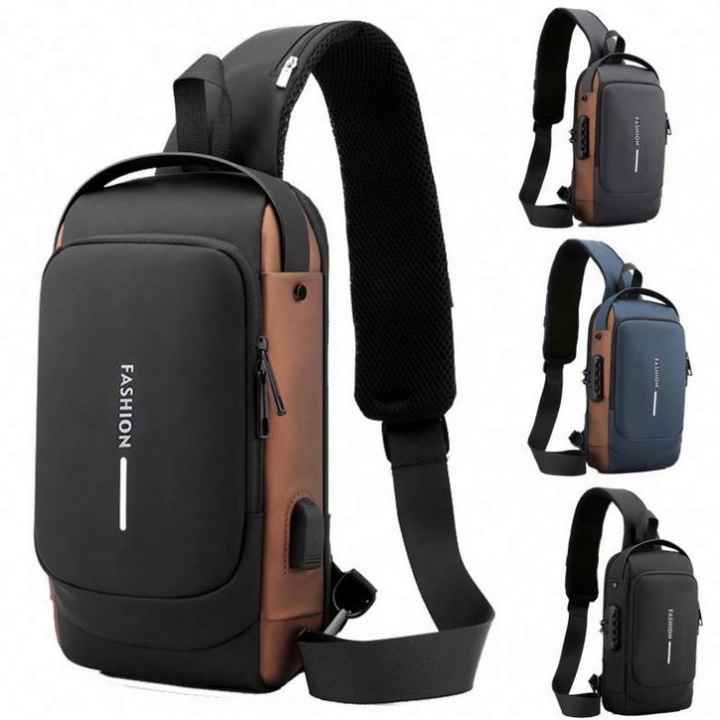 กระเป๋าสะพายข้างสำหรับผู้ชายกระเป๋าคาดลำตัวมีรหัสผ่านล็อกป้องกันการโจรกรรมกันน้ำล่าสุด2024