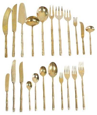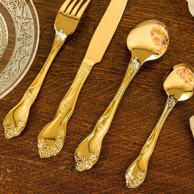 เครื่องใช้บนโต๊ะอาหารทองเหลืองสไตล์หรูหรา2024เครื่องเงิน24ชิ้นชุดช้อนและส้อมชุดเครื่องใช้บนโต๊ะอาหารทองเหลืองทองสำหรับใช้เป็นของขวัญแต่งงาน