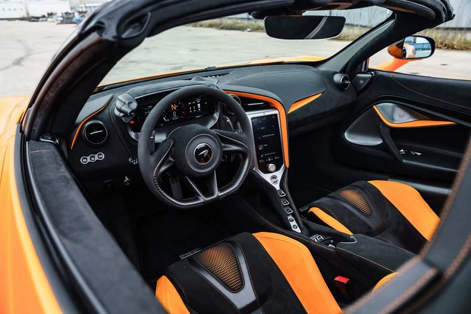 ยาง R20 2024 mclarens 750S Spider ORANGE กระปุกเกียร์อัตโนมัติผ้าดำเทอร์โบได้รับการรับรองว่าเป็นอลูมิเนียมอัลลอยที่สะอาดและเป็นธรรม