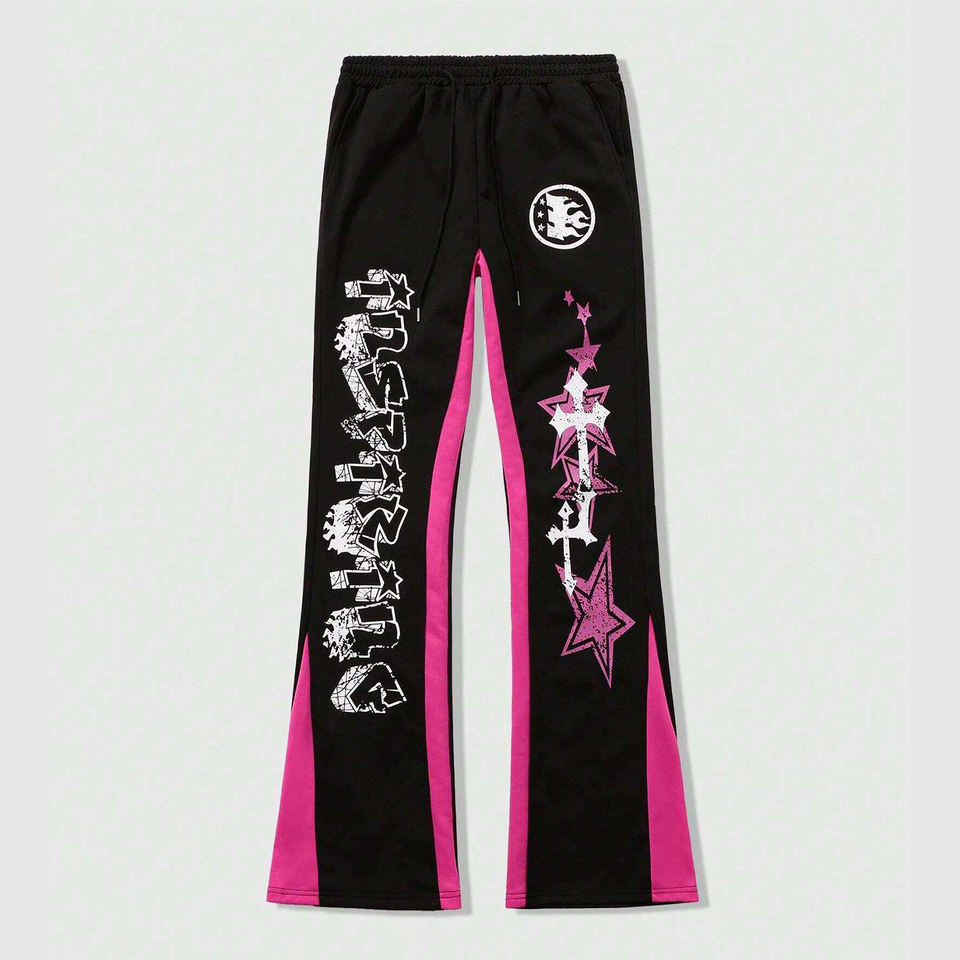 กางเกงสเวตเตอร์พิมพ์ลาย DTF ของผู้ชายของ2024กางเกงวอร์มสีตัดกันแบบปะติดกางเกงขาบานสำหรับฤดูใบไม้ผลิฤดูร้อน