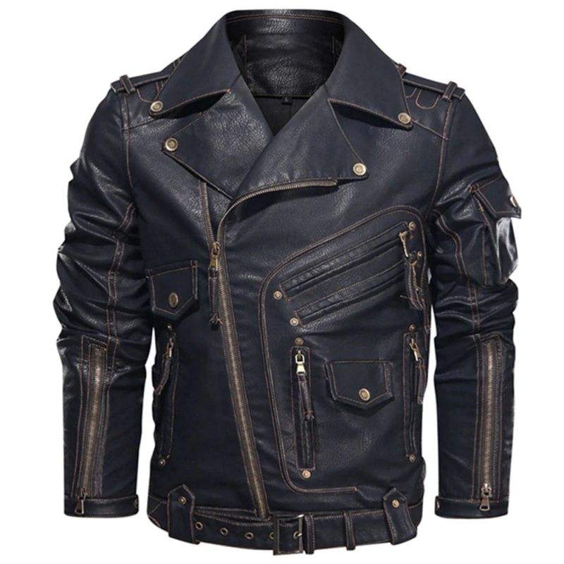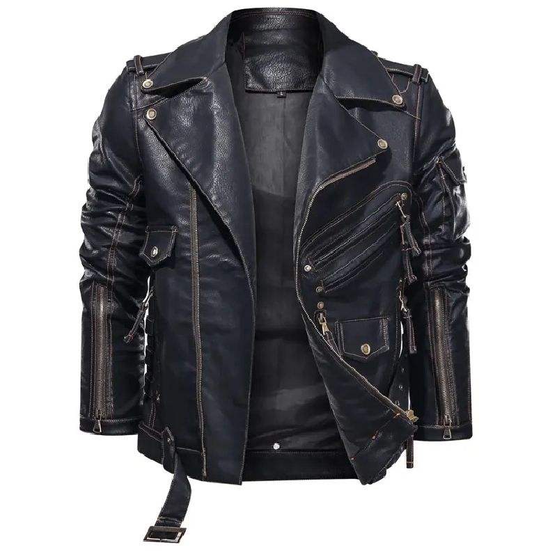 2024เสื้อแจ็กเก็ตหนังสำหรับผู้ชายหรือเสื้อโค้ทหนังสำหรับขี่มอเตอร์ไซค์ทรงสลิมฟิตสำหรับฤดูใบไม้ผลิฤดูใบไม้ร่วง
