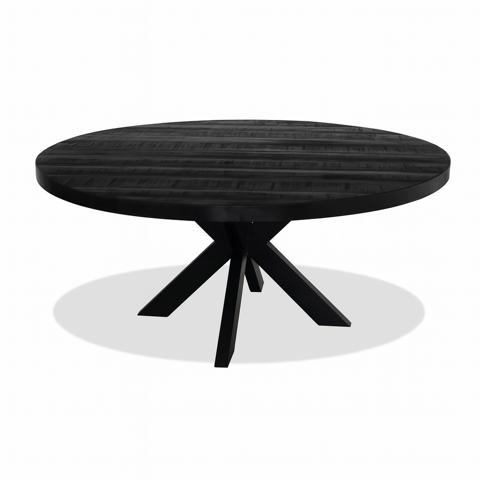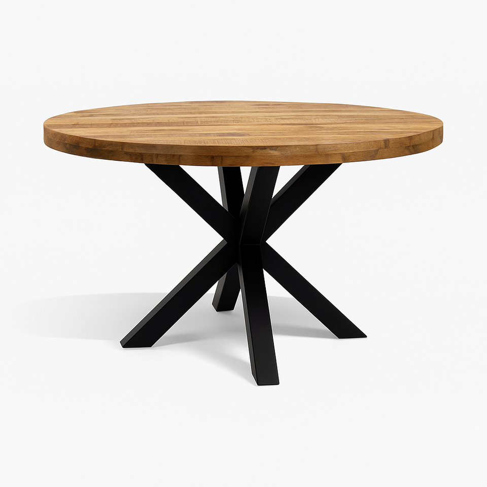 โต๊ะรับประทานอาหารไม้มะม่วงทรงกลมที่ทันสมัย | ขาไขว้โลหะอุตสาหกรรม | เฟอร์นิเจอร์ห้องรับประทานอาหารเบา