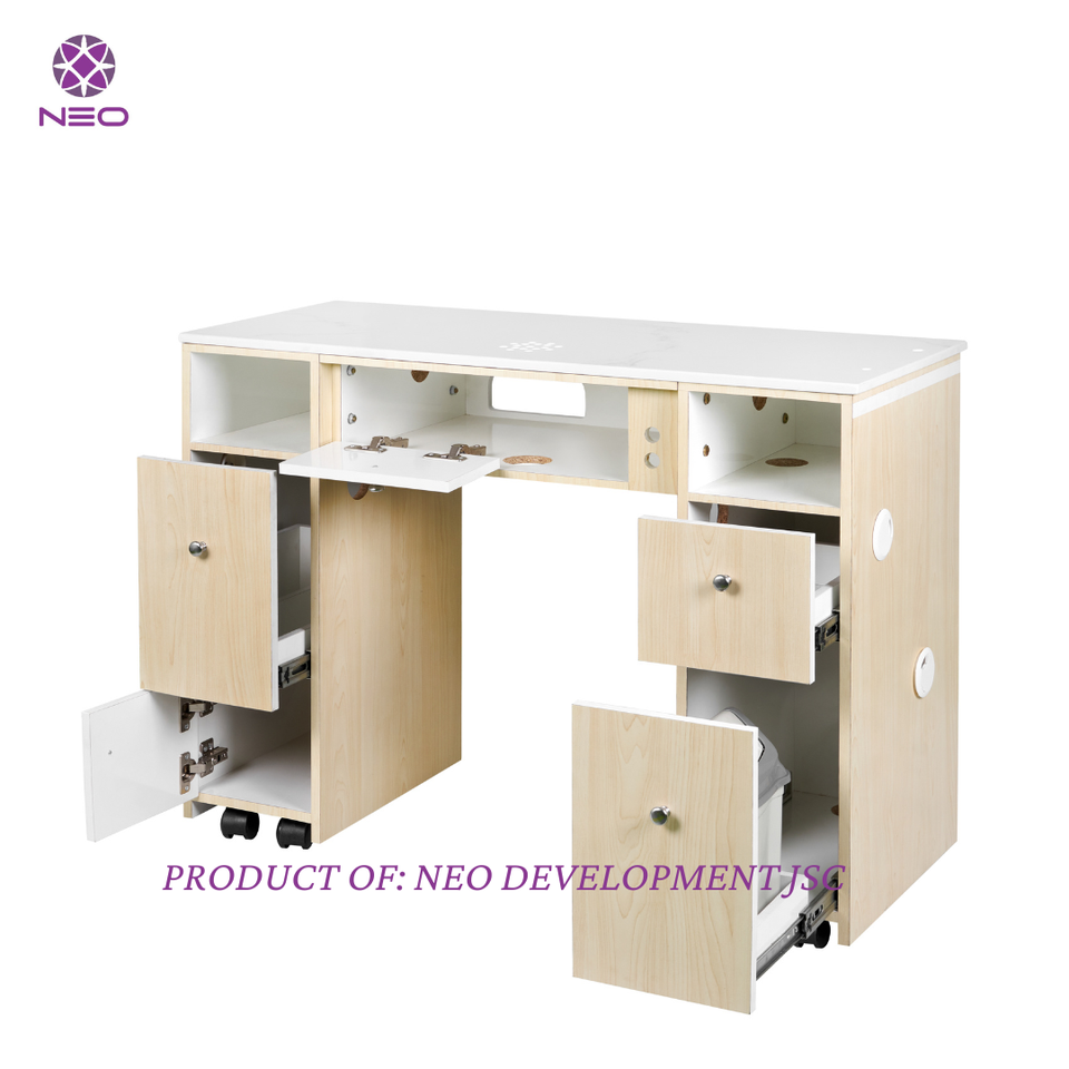 2024โต๊ะในร้านทำเล็บหรูหราทันสมัยพร้อมลิ้นชักเก็บของคู่ไฟการออกแบบที่หรูหราสำหรับร้านความงาม