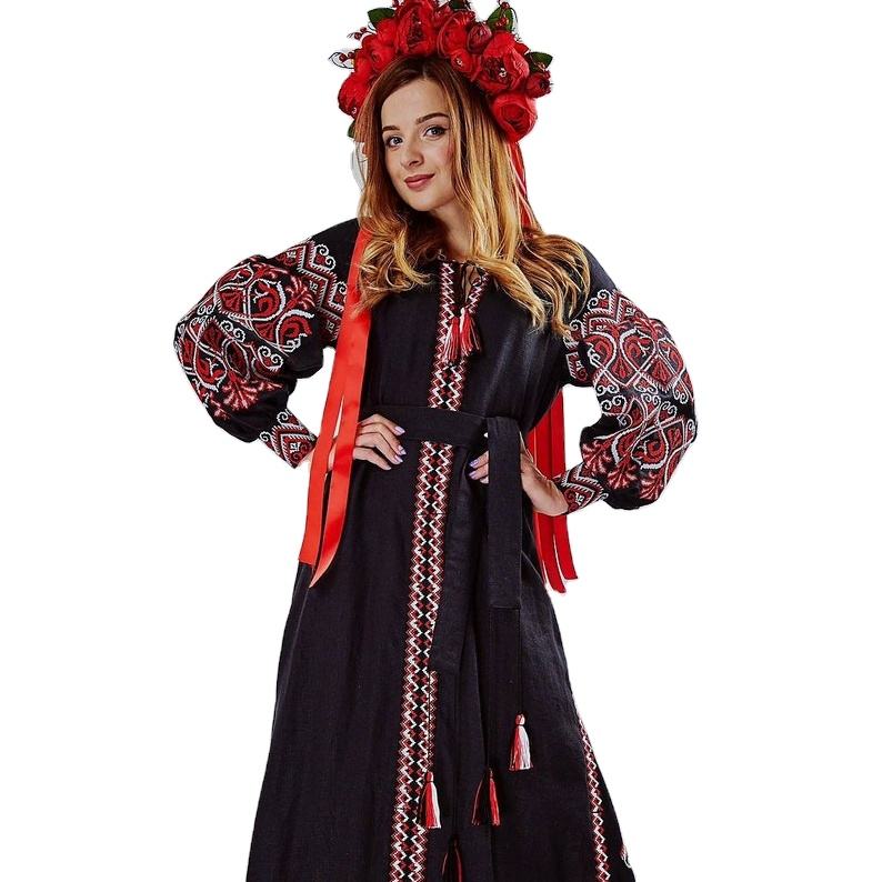 เดรสยูเครนแขนยาวปักลายสำหรับผู้หญิงชุดเดรสยาวคลุมเข่าสไตล์โบฮีเมียนสำหรับใส่ไปงานเลี้ยง