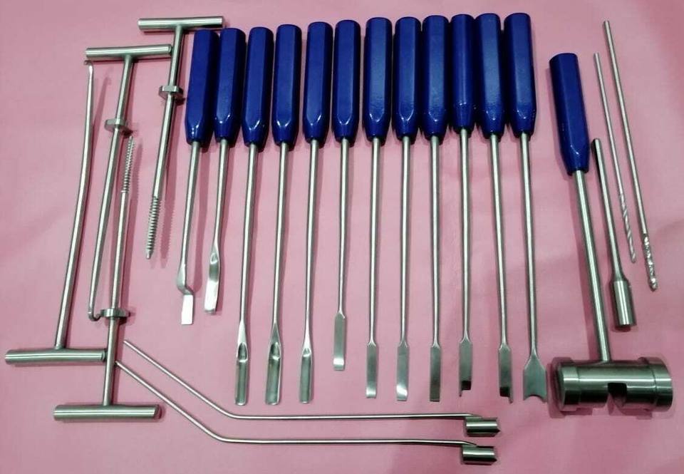 ชุดเครื่องมือถอดซีเมนต์แบบมุลเลอร์ ปี 2024 สีน้ำเงินเหล็ก 22 ชิ้น เครื่องมือผ่าตัดแบบแมนนวลสำหรับศัลยกรรมกระดูก รับประกัน 1 ปี 2 ปี