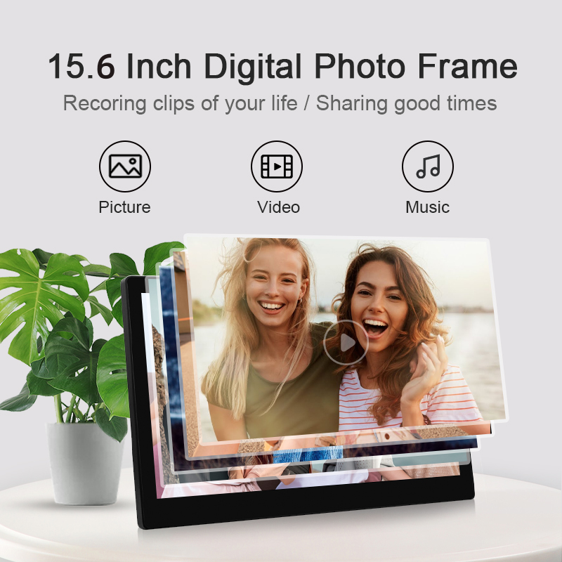 2024กรอบรูป LED อัจฉริยะ15.6นิ้วสำหรับตกแต่ง, กรอบรูปเพลงวิดีโอดิจิทัลแฟชั่นใหม่