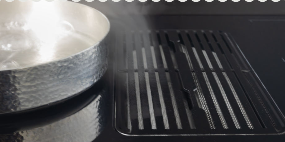 เตาเหนี่ยวนำสี่เตาพร้อมฝากระโปรง