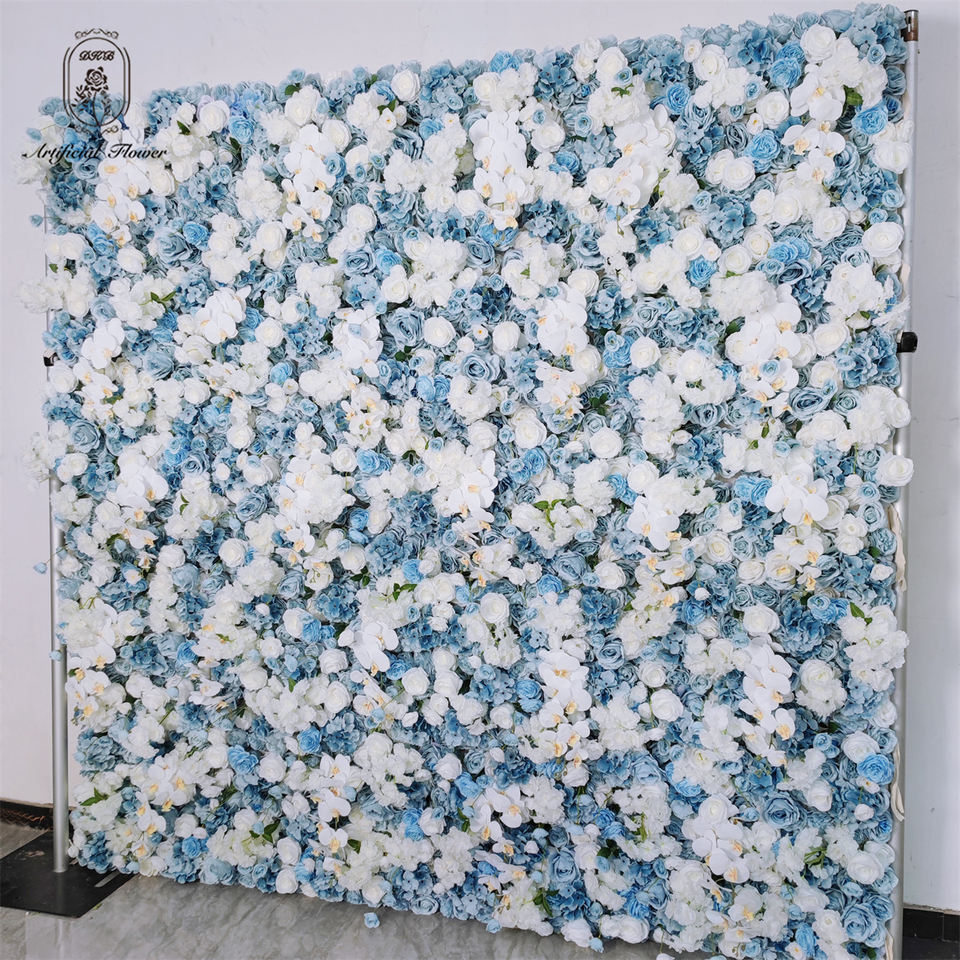 2024 ใหม่ 3D ประดิษฐ์สีขาวสีฟ้าผีเสื้อกล้วยไม้ Rose ไฮเดรนเยียซิปม้วนดอกไม้ผนัง 8x8 สําหรับงานแต่งงานตกแต่ง