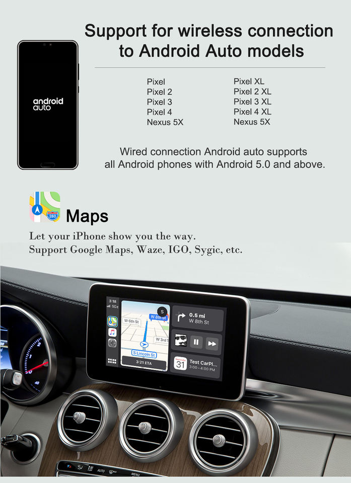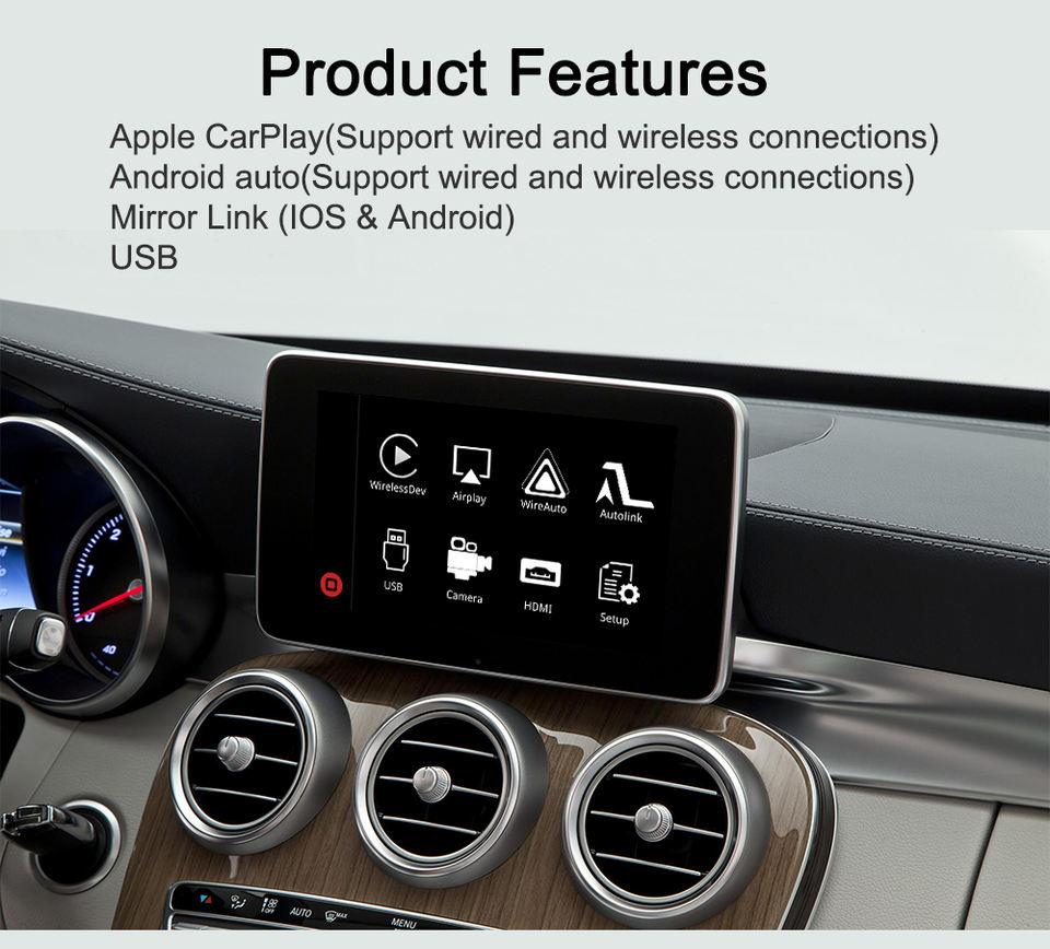 ตัวถอดรหัส Wireless Carplay รุ่นใหม่ ปี 2024 สำหรับ Benz-4.5-System อัพเกรดรถยนต์เดิม/หน้าจอโทรศัพท์มือถือ/Android Auto/YouTube