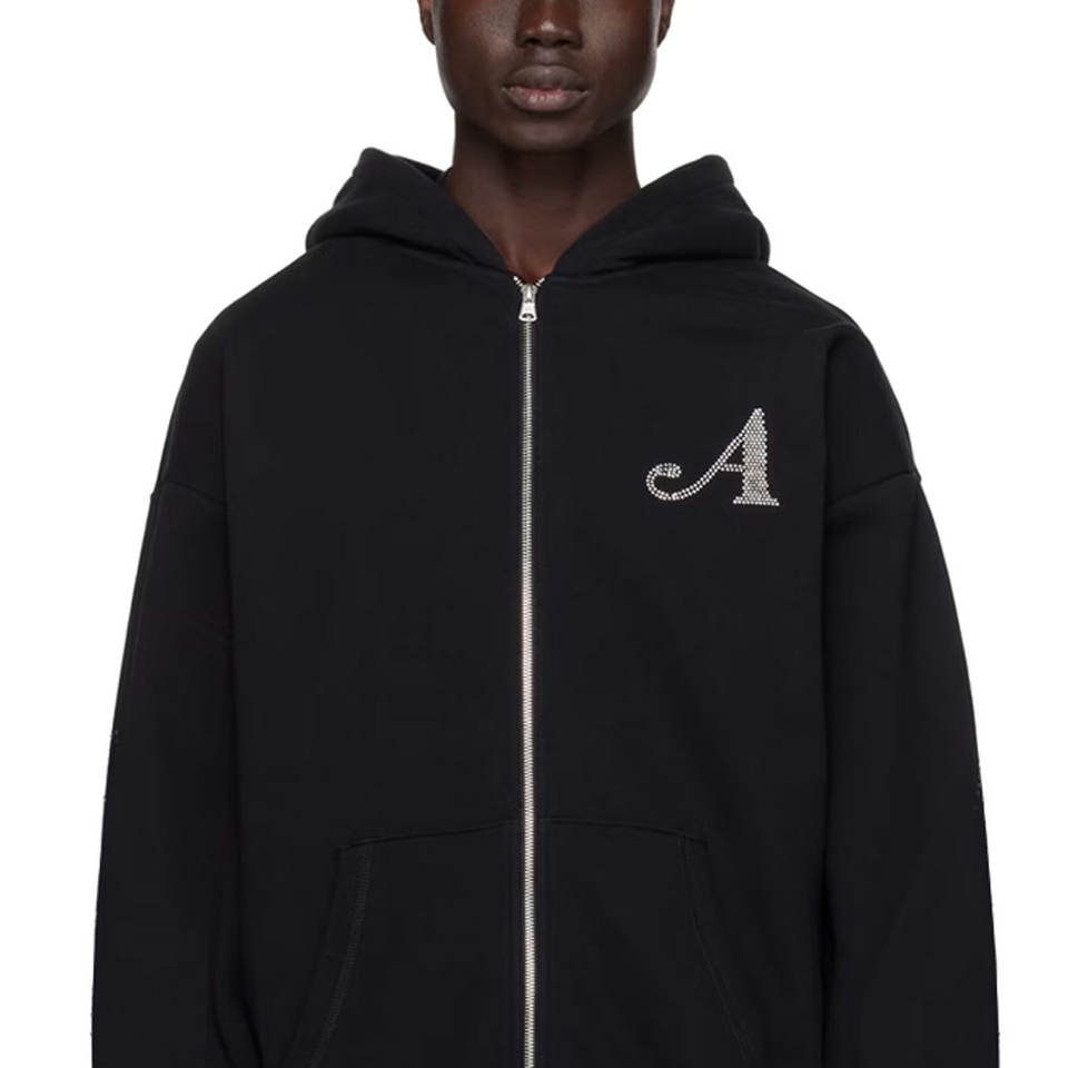 เสื้อมีฮู้ดแบบสวมหัวของผู้ชายเสื้อมีซิปผ้าฟลีซนุ่มตกแต่งด้วยพลอยเทียมดีไซน์ตามสั่งสำหรับฤดูหนาวสินค้ามาใหม่2024