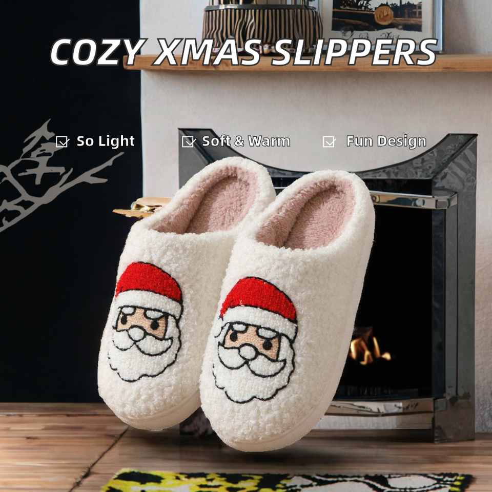 รองเท้าใส่ในบ้านนุ่มสบายกันลื่นลายต้นคริสต์มาสซานต้า รุ่นใหม่ปี 2024 ผ้าพลัฌอุ่นๆ สำหรับฤดูหนาว