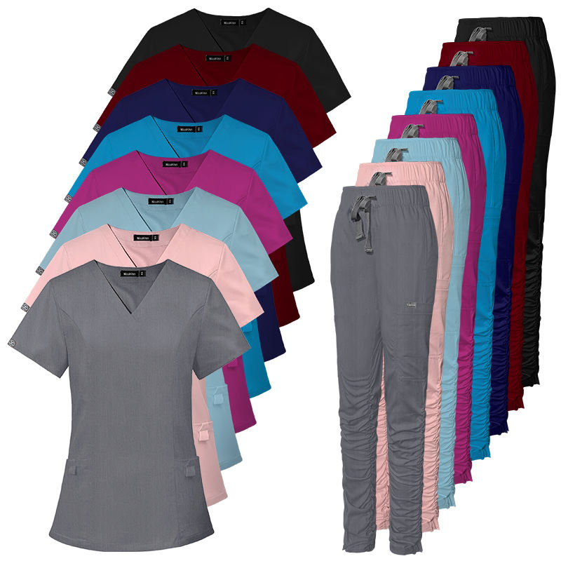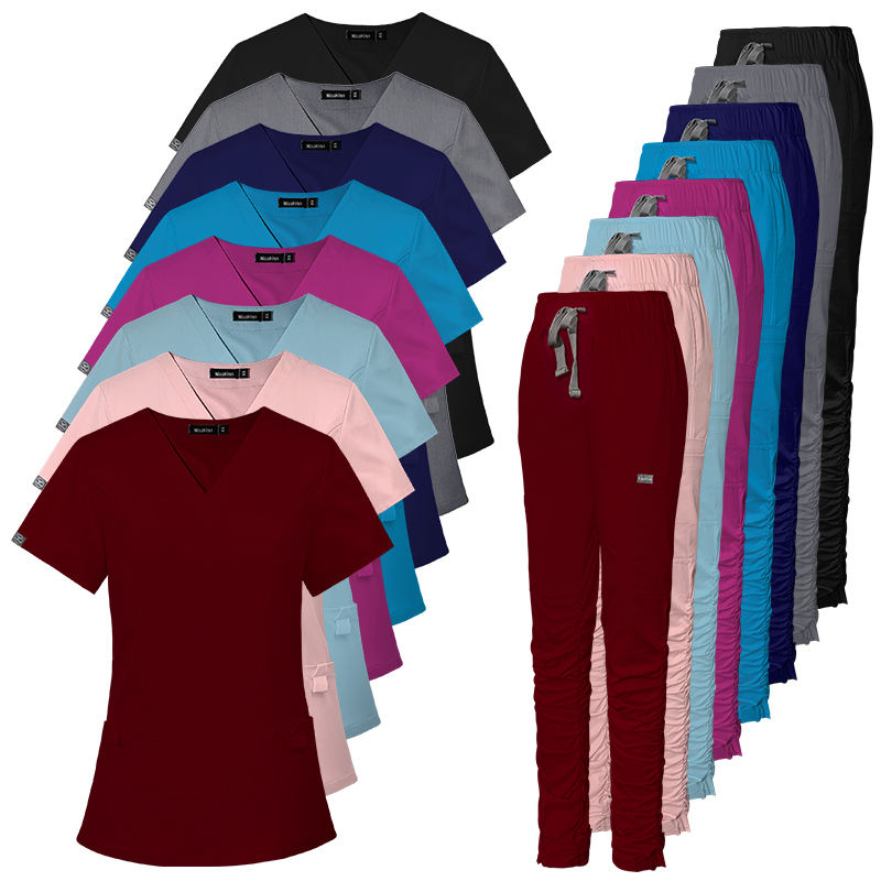 Leiber ชุดเครื่องแบบโรงพยาบาลแบบสวมหัวแขนสั้นสีน้ำเงินอ่อนใส่ได้ทั้งชายและหญิง