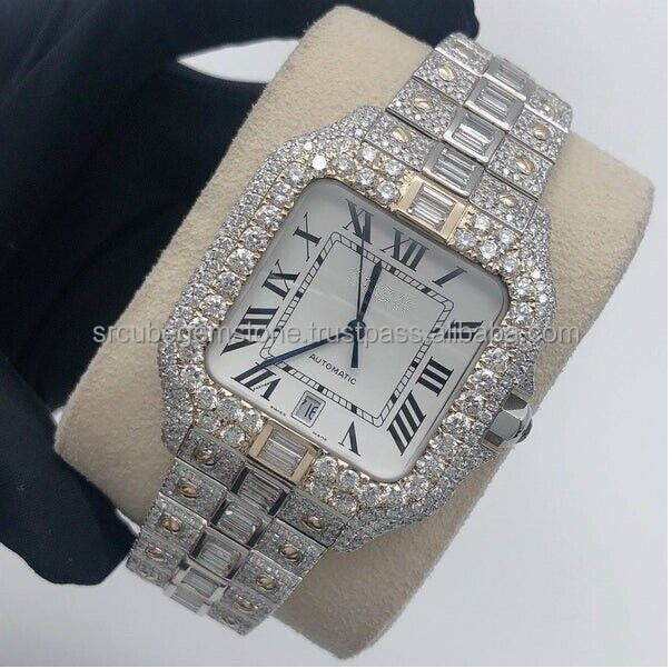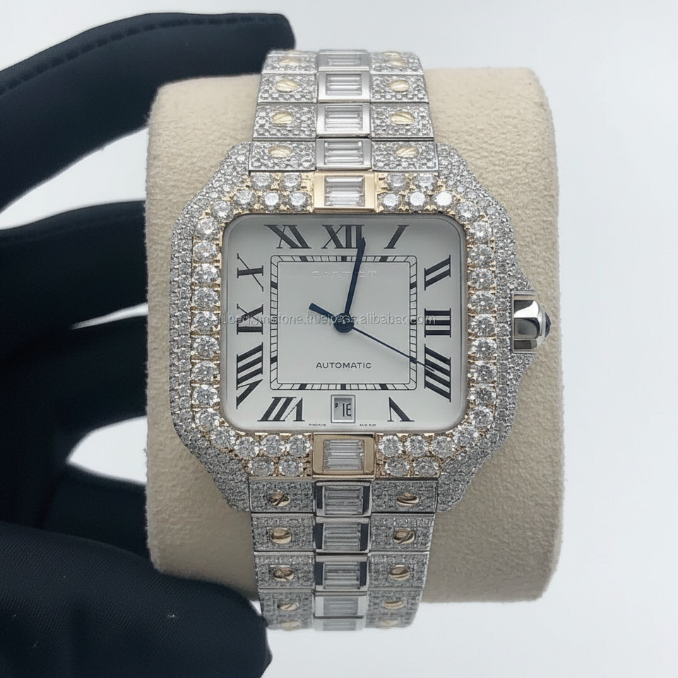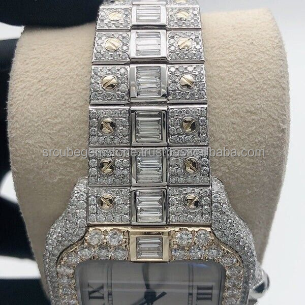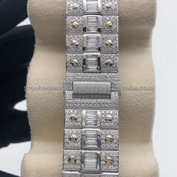 2024นาฬิกาเพชรทรงบาแกตต์สไตล์ฮิปฮอปโตจากแล็บสินค้าแฟชั่นสแตนเลส