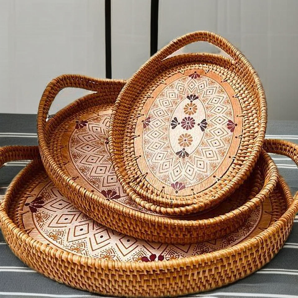 ตะกร้าหวายสานด้วยมือสำหรับทำอาหาร2024ถาดเสิร์ฟทำจากไม้ปรับแต่งได้สำหรับห้องครัวบ้านอาหาร