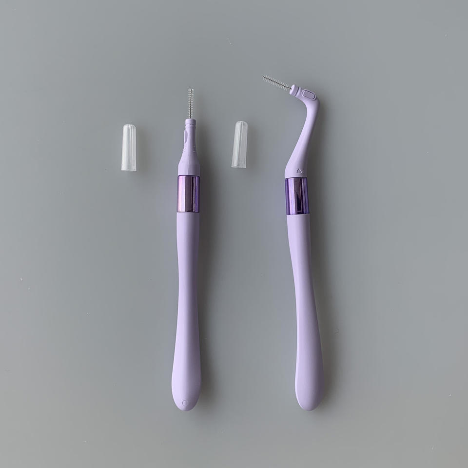 2024มาใหม่เปลี่ยนได้2 in 1แปรงทันตกรรมรูปทรง I และ L สีม่วงกล่องพกพา PP ไหมขัดฟัน