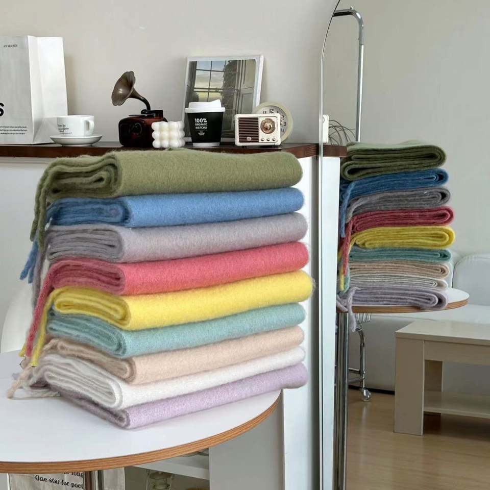 ผ้าพันคอยาวขนหนาพร้อมพู่ห้อยสำหรับผู้หญิงผ้าพันคอแคชเมียร์สุดหรูมาใหม่2024สำหรับฤดูหนาว