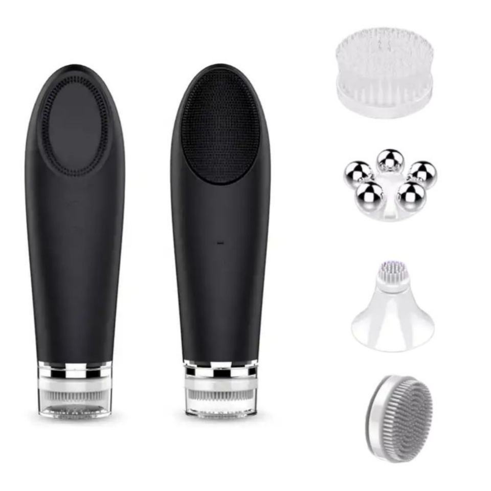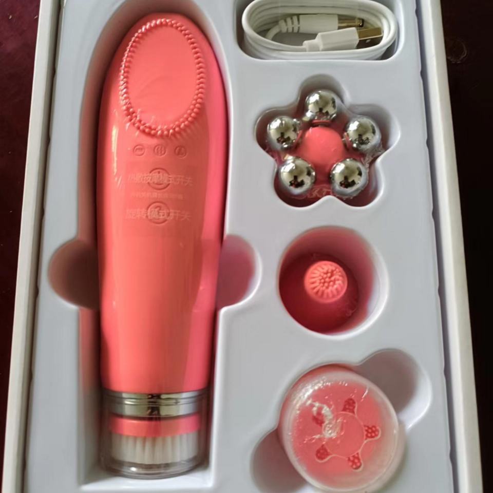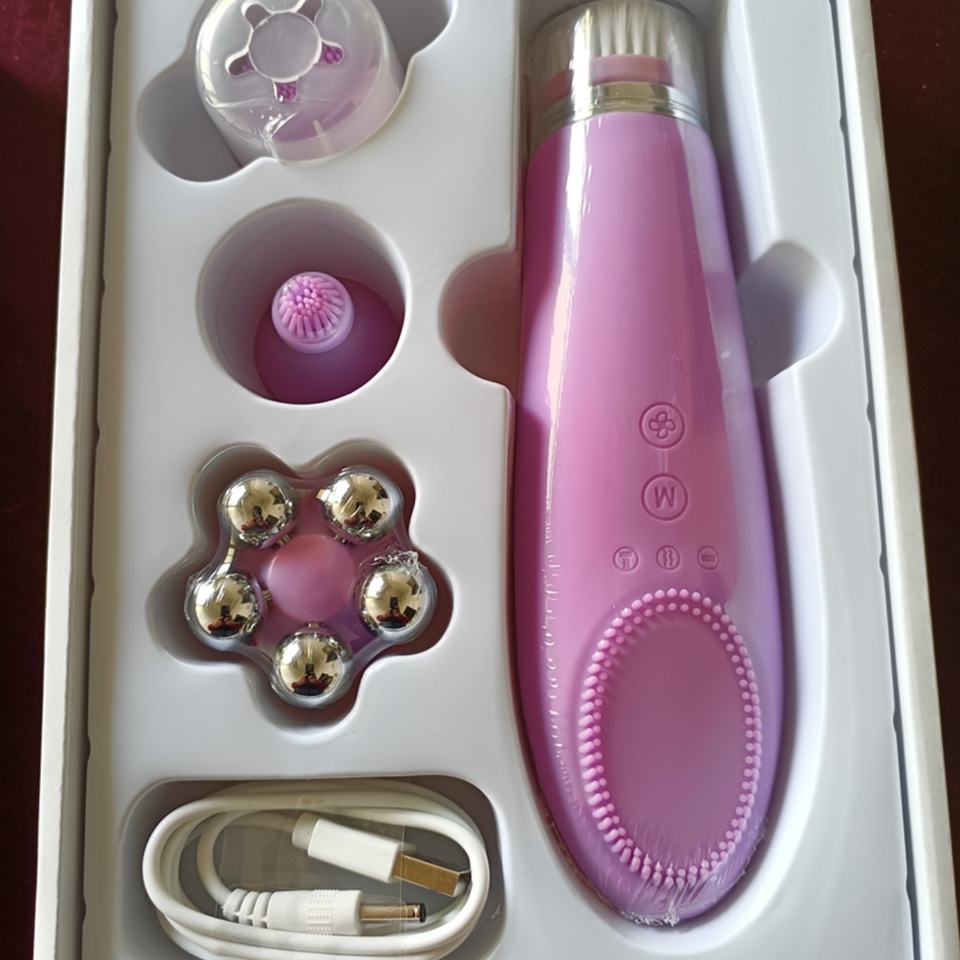 2024 New Arrival Waterproof Soft Silicone Electric Cleansing Facial Massager Whitening Nose Lips Face Washing Brush 5 Heads USB