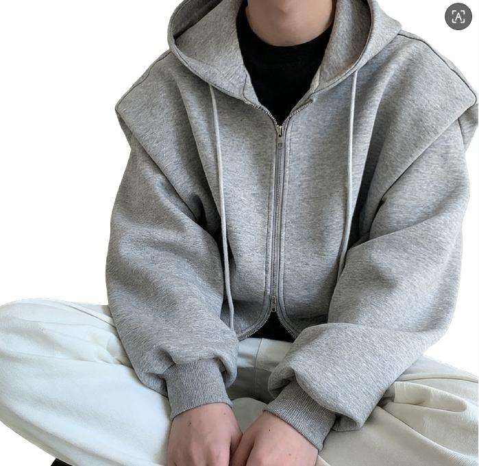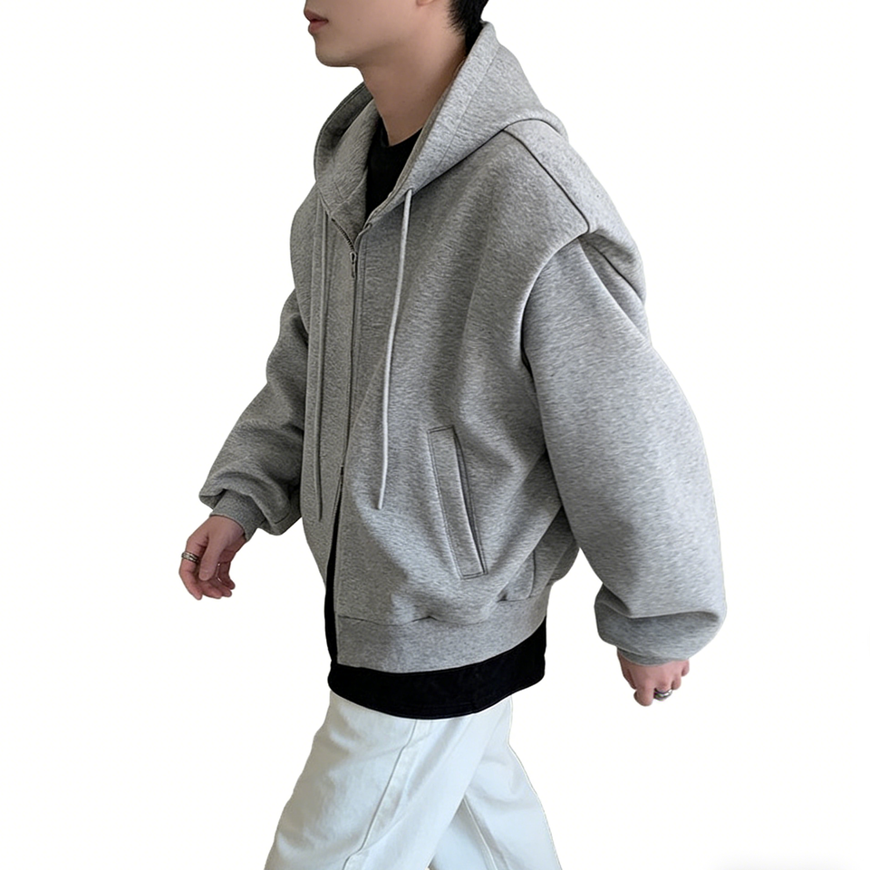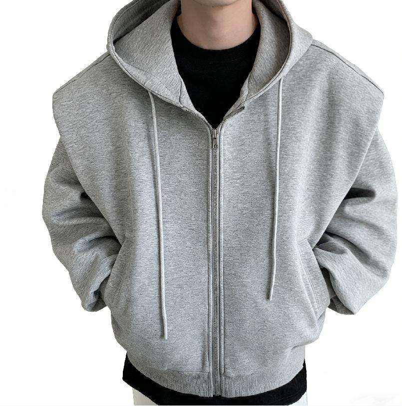 เสื้อฮู้ดซิปผู้ชายสีเทาคอลเลคชั่นใหม่ปี 2024 ทรงหลวม ผ้า Worsted พิมพ์โลโก้ตามสั่ง
