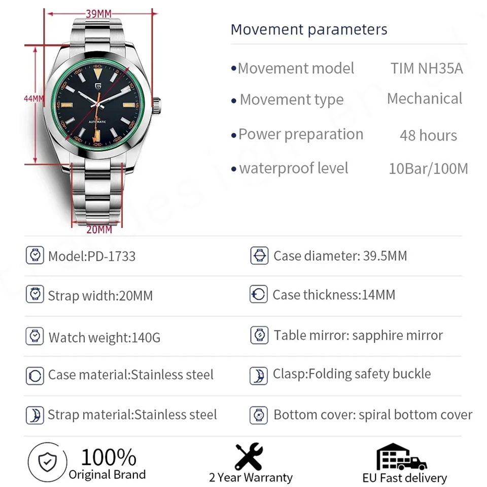 ลักษณะ:ออโต้วันที่, โครโนกราฟ, วัน / วัน, กันน้ำ, เรืองแสง, แสงกลับ