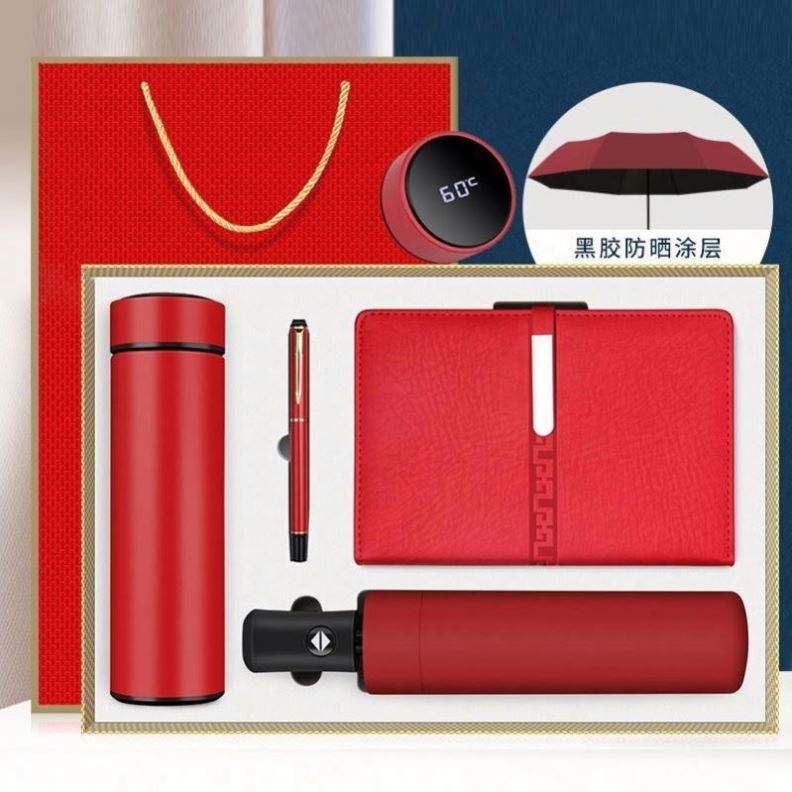 ชุดของขวัญสมุดโน้ตและร่มสแตนเลสสำหรับธุรกิจ แบรนด์ใหม่ ปี 2024 สำหรับการตลาดและการส่งเสริมการขายขององค์กร พร้อมโลโก้พิมพ์ซิลค์สกรีน