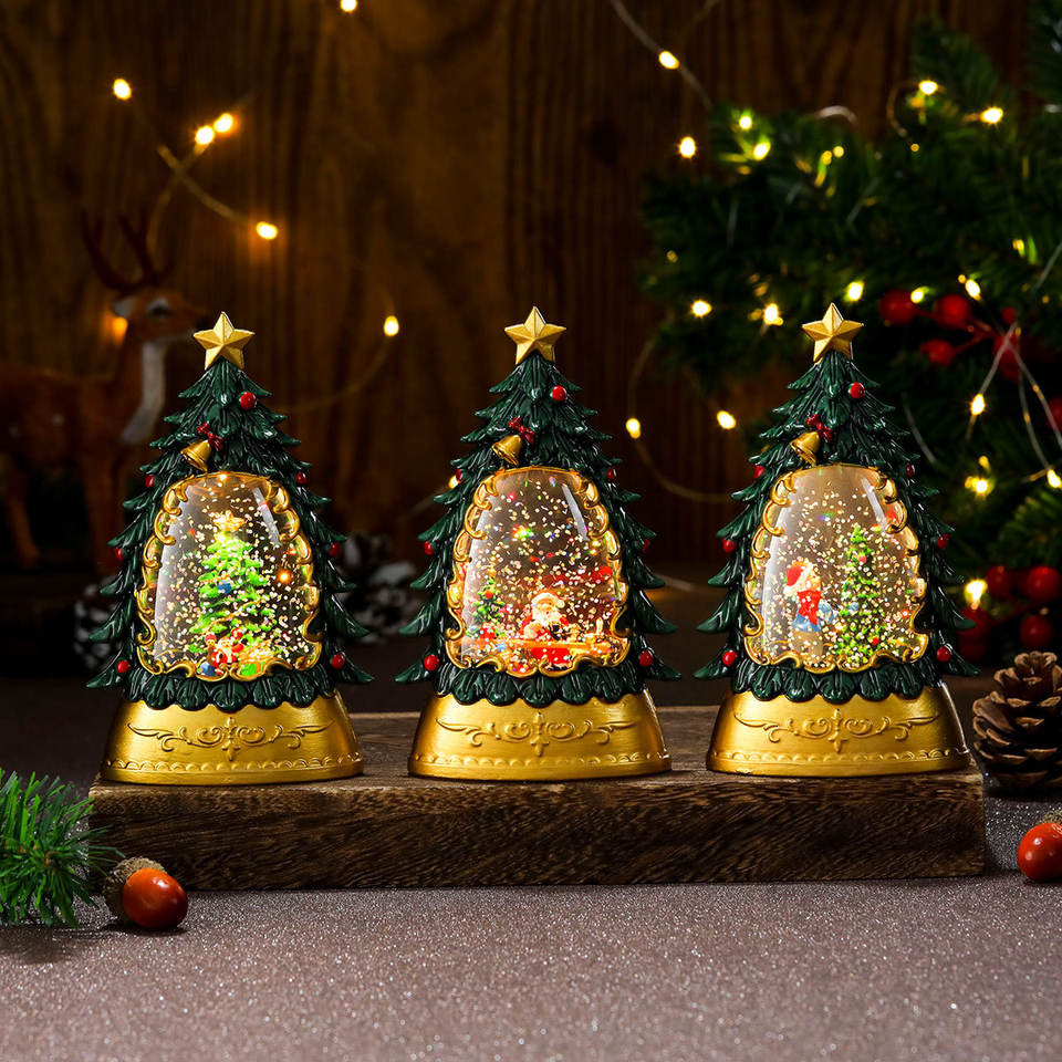 ของตกแต่งต้นคริสต์มาสปี 2024 ของขวัญงานฝีมือพลาสติก ไฟ LED ซานตาคลอส ลูกบอลหิมะ โคมไฟน้ำ